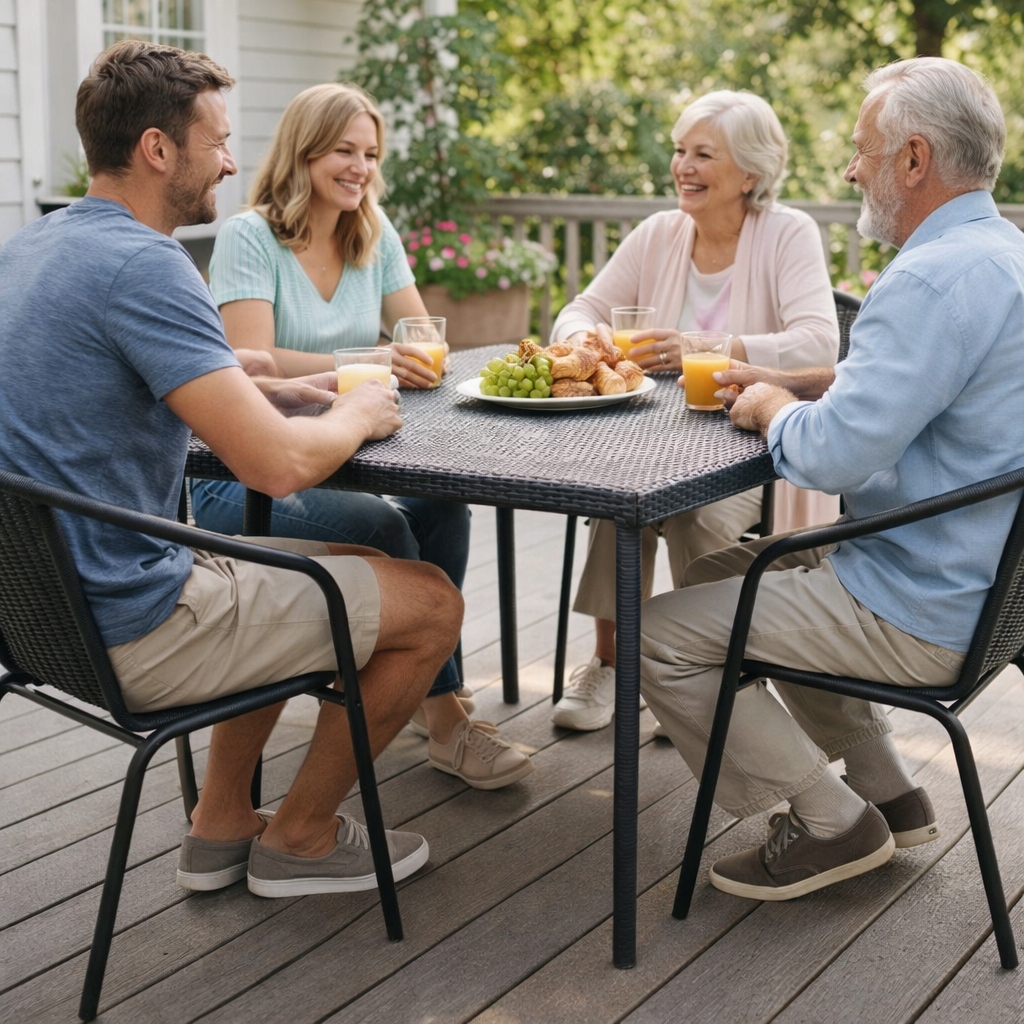 To krzesło to idealny kompromis między solidnością a wygodą użytkowania. Mimo zastosowania wytrzymałej stali, konstrukcja jest zaskakująco lekka (tylko 2,7 kg) i poręczna. Bez problemu przeniesiesz je jedną ręką, co czyni je niezwykle praktycznym rozwiązaniem na co dzień – zarówno podczas sprzątania tarasu, jak i niespodziewanej wizyty gości.