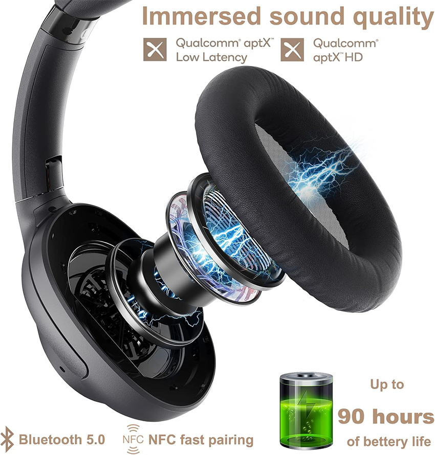 Słuchawki E500Pro z aktywną redukcją szumów mają nauszniki z ultramiękkiej skóry proteinowej z wyściółką z pianki zapamiętującej kształt, która wygodnie dopasowuje się do uszu i zapewnia miękką teksturę przypominającą piankę marshmallow. Noś go przez cały dzień bez dyskomfortu.