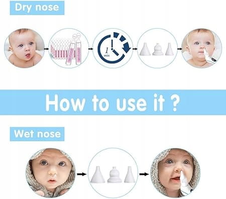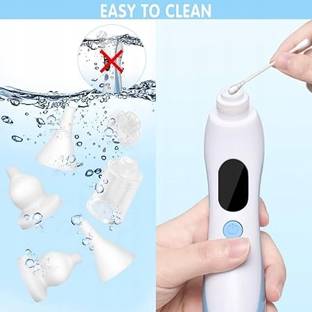 Łatwy w użyciu i czyszczeniu Elektryczny odkurzacz do nosa można otworzyć jednym naciśnięciem przycisku. Za każdym razem, gdy używasz elektrycznego odkurzacza do nosa dla dzieci, musisz zdjąć akcesoria i spłukać wodą, nie martwiąc się o rozwój pleśni i bakterii w środku. Uwaga: Nie myj całego ciała.
