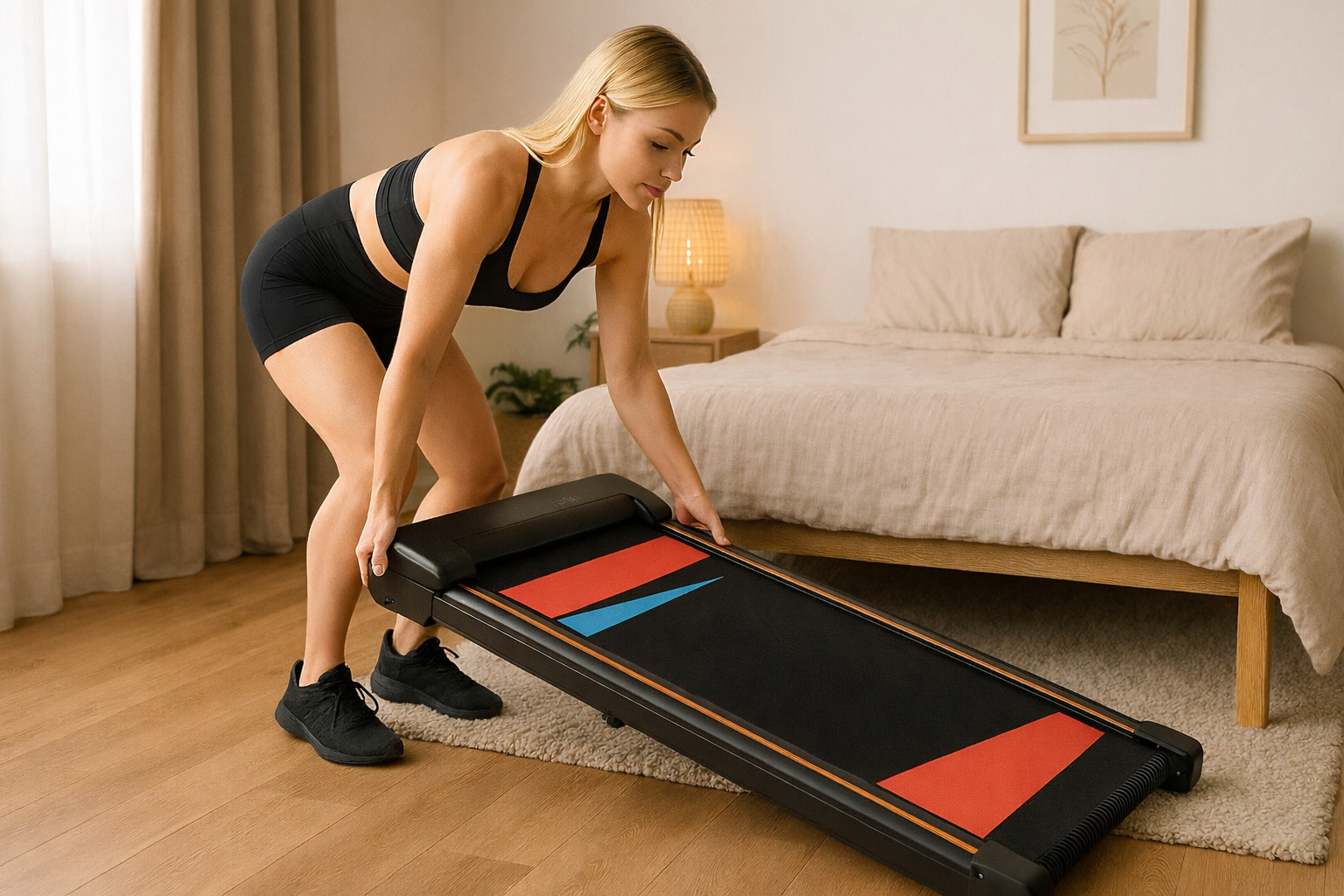 - Nowoczesny design – kompaktowa, ultracienka bieżnia zajmuje minimalną ilość miejsca, dzięki czemu doskonale sprawdzi się nawet w małych mieszkaniach.