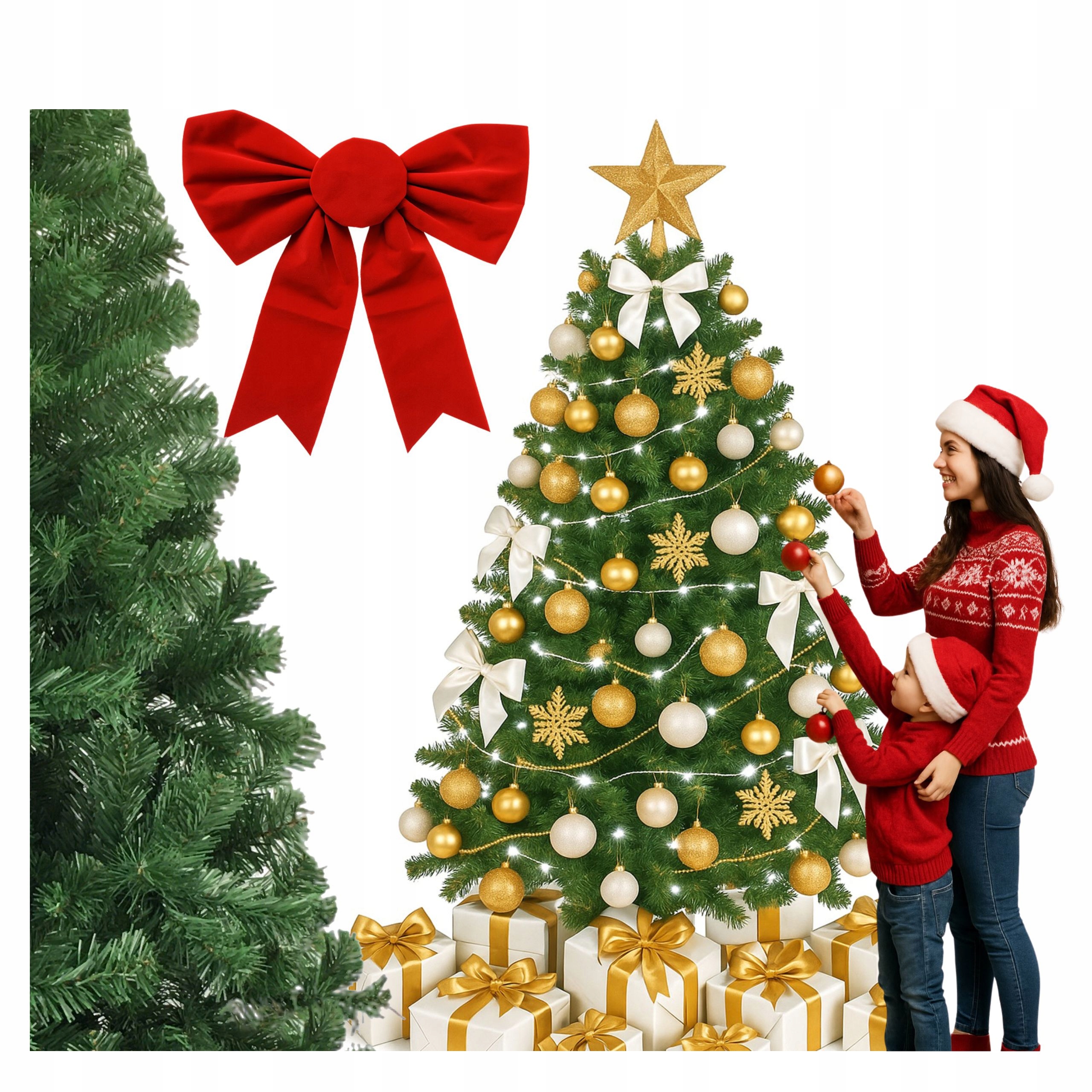 CHOINKA SZTUCZNA 210 cm GĘSTA JODŁA ZIELONA JAK ŻYWA + STOJAK +KOKARDA TCA13