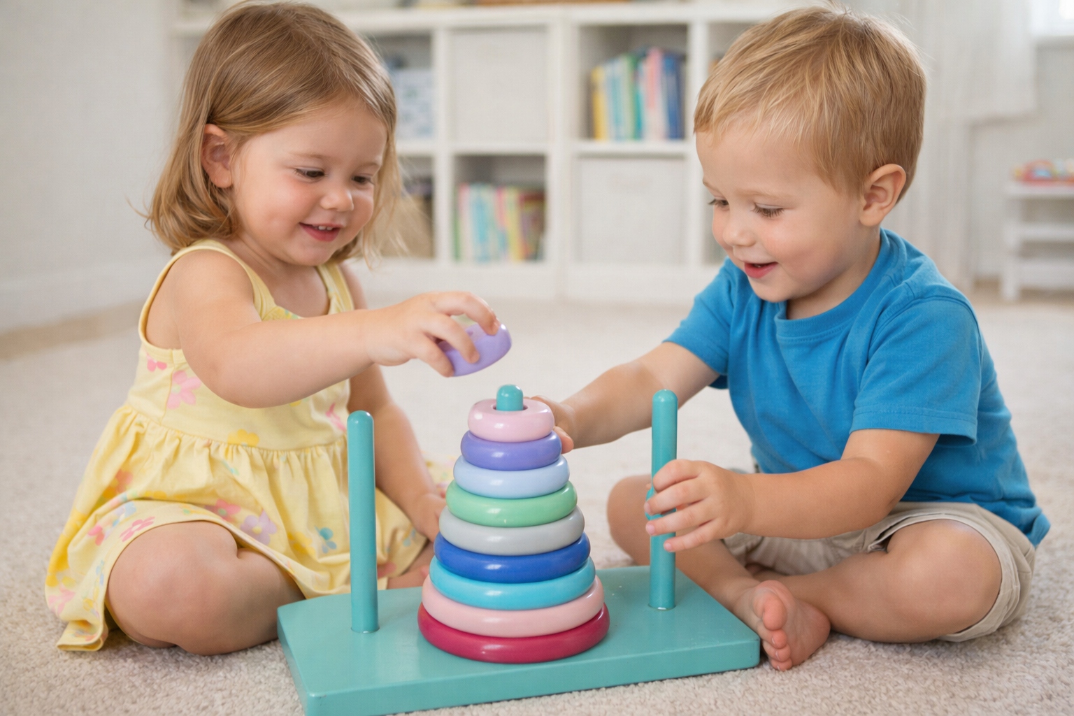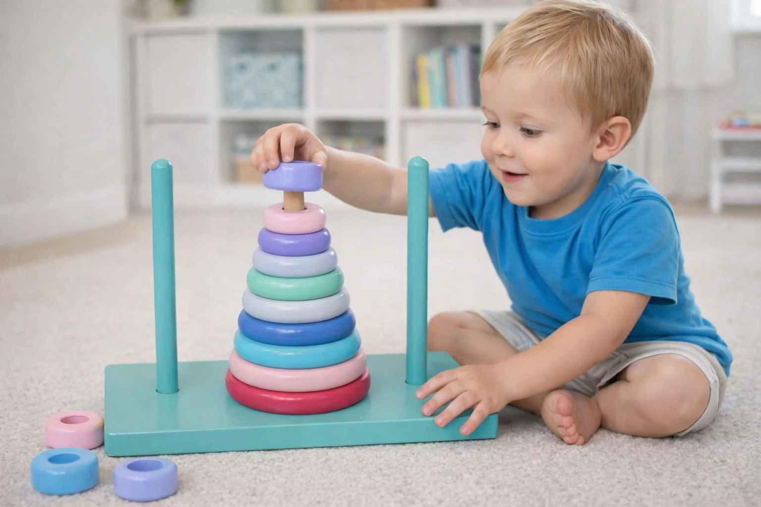 ZABAWKI EDUKACYJNE: Zabawki do układania kółek rozwijają kreatywność, logikę, umiejętności pomiaru i koordynację wzrokowo-ruchową.