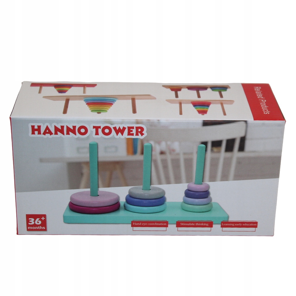 DREWNIANA UKŁADANKA Wieża Krążki Rozwój Dzieci Montessori