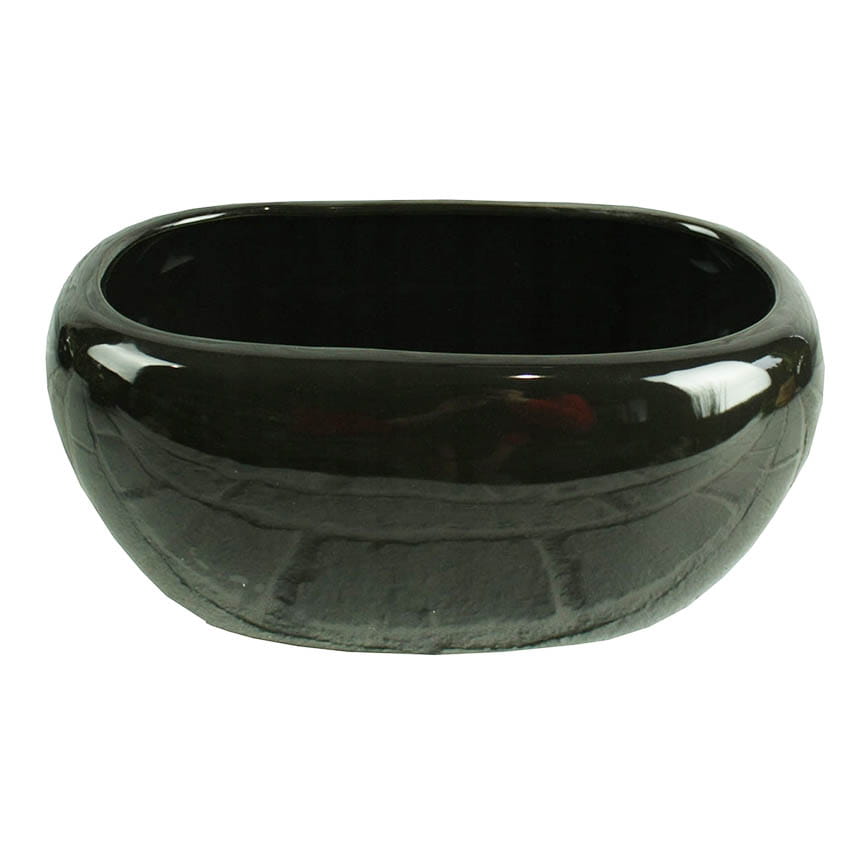 Duża, ceramiczna doniczka w czarnym kolorze.