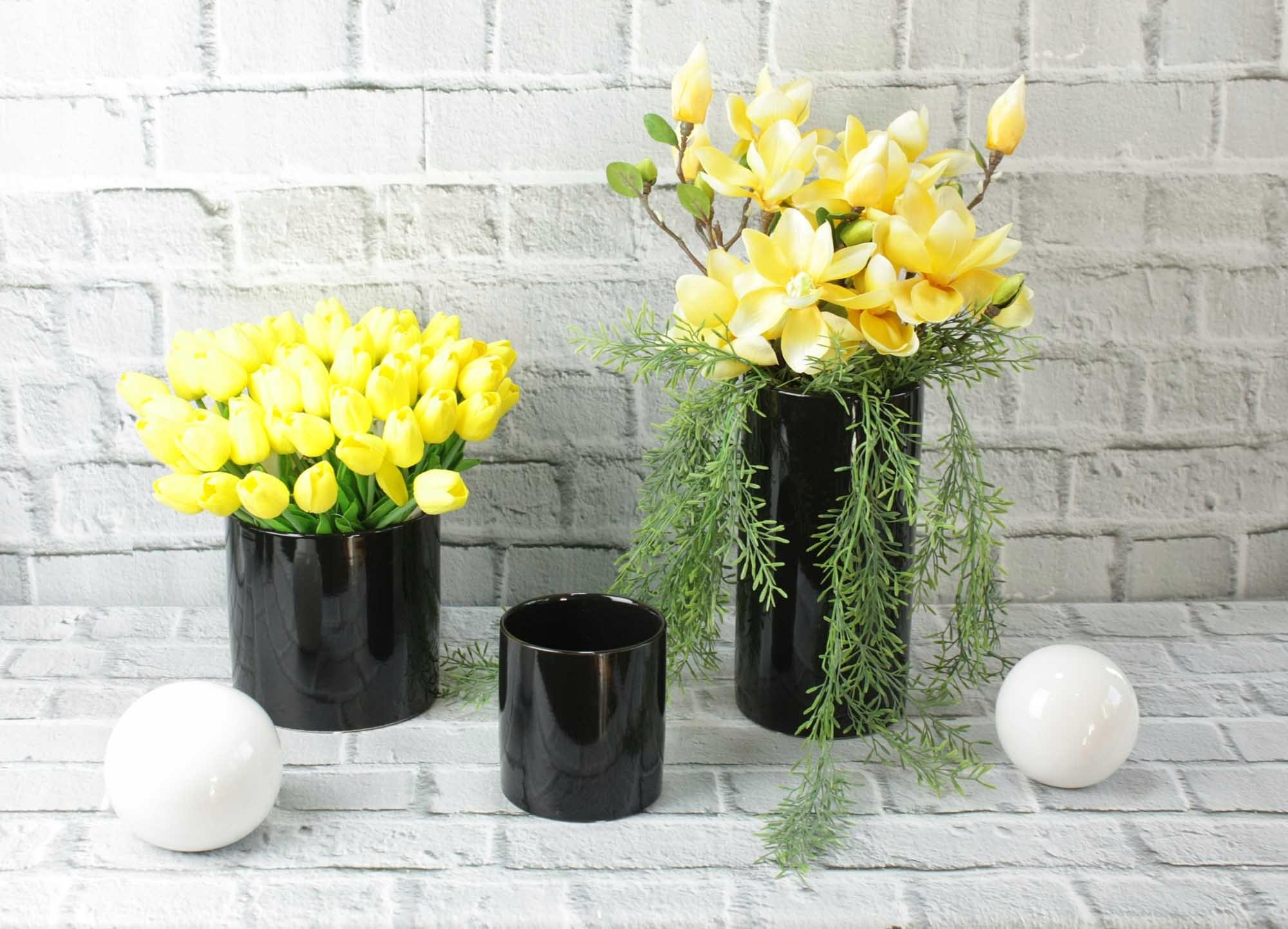 Doniczka ceramiczna osłonka czarna walec H15