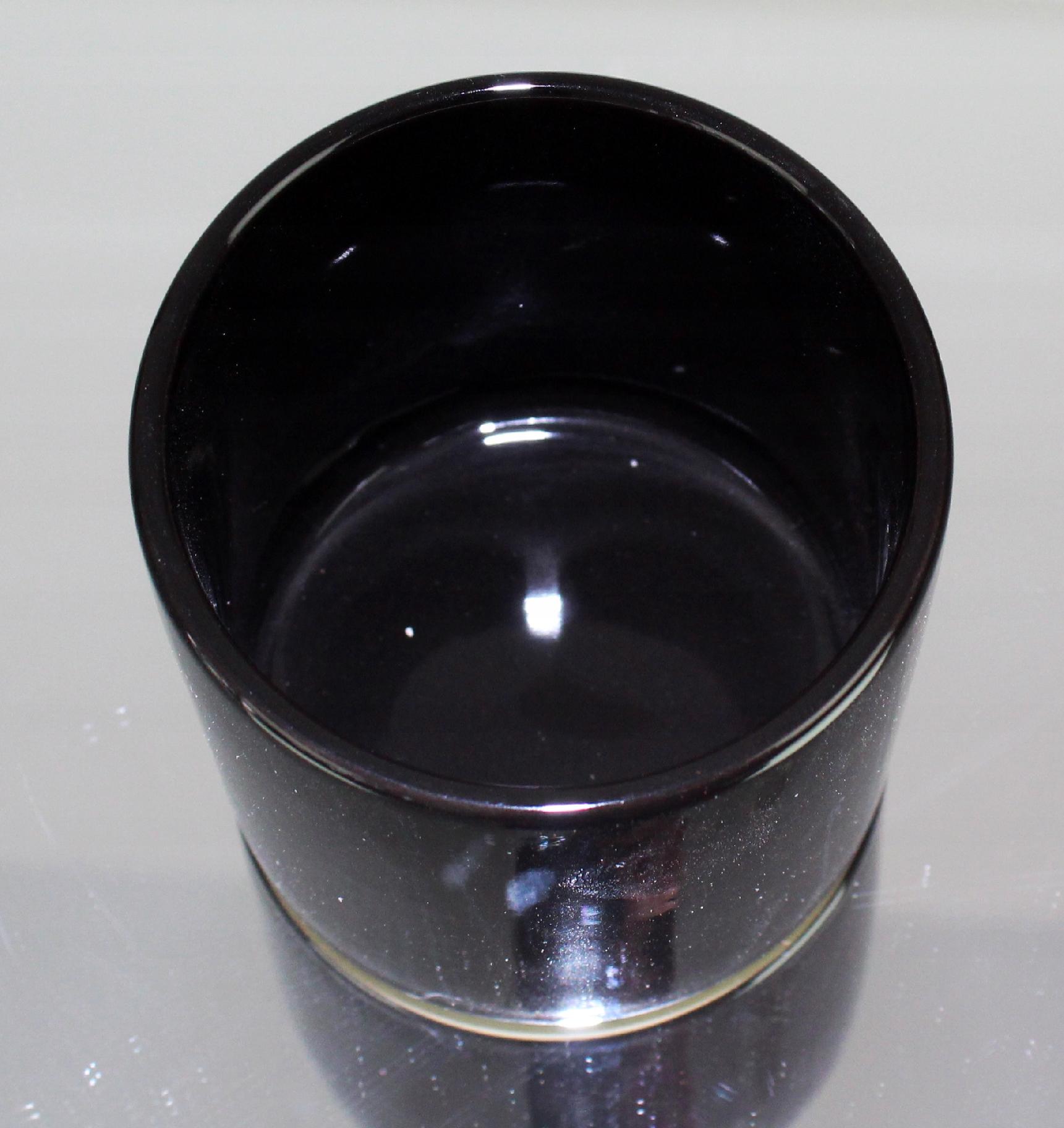 Czarny kolor nadające metalicznego charakteru, znajduje się na całej powierzchni artykułu, także w środku.