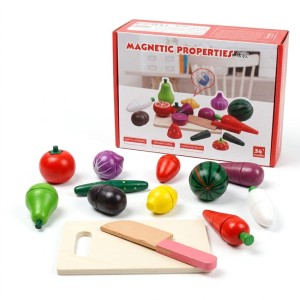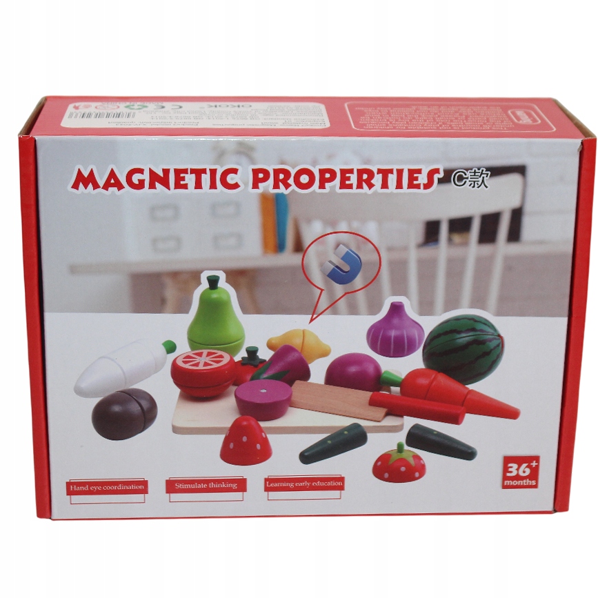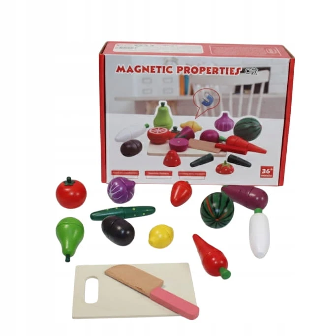 - Fantastyczna Zabawa w Gotowanie: Dzieci uwielbiają naśladować dorosłych! Dzięki drewnianej desce i nożykowi mogą bezpiecznie "kroić" warzywa i owoce, które połączone są mocnymi magnesami.