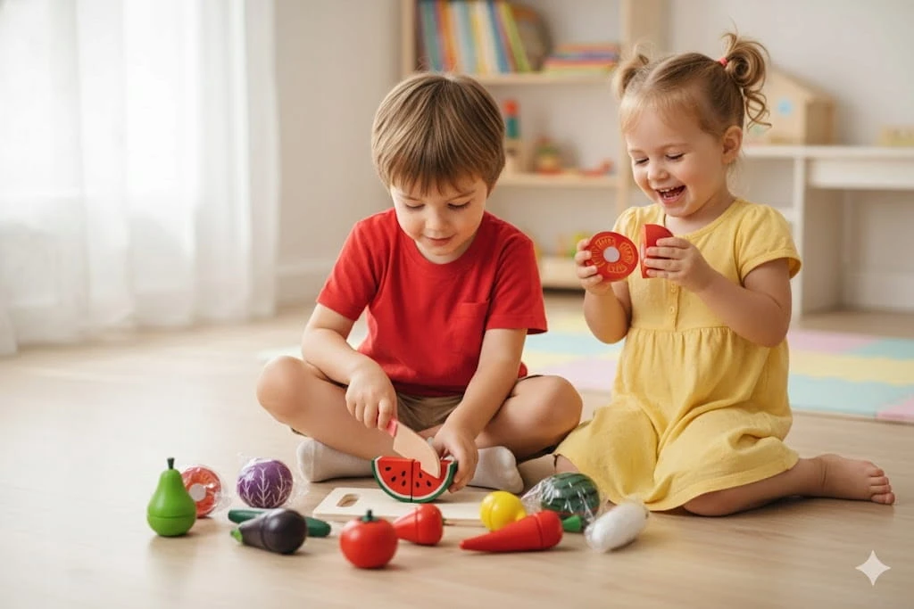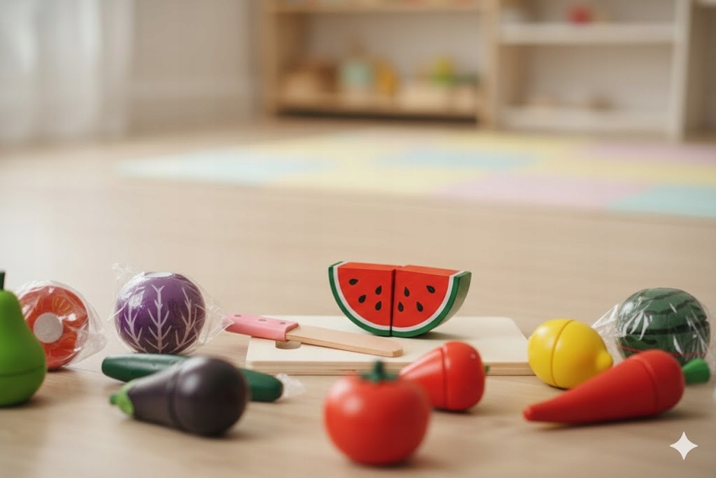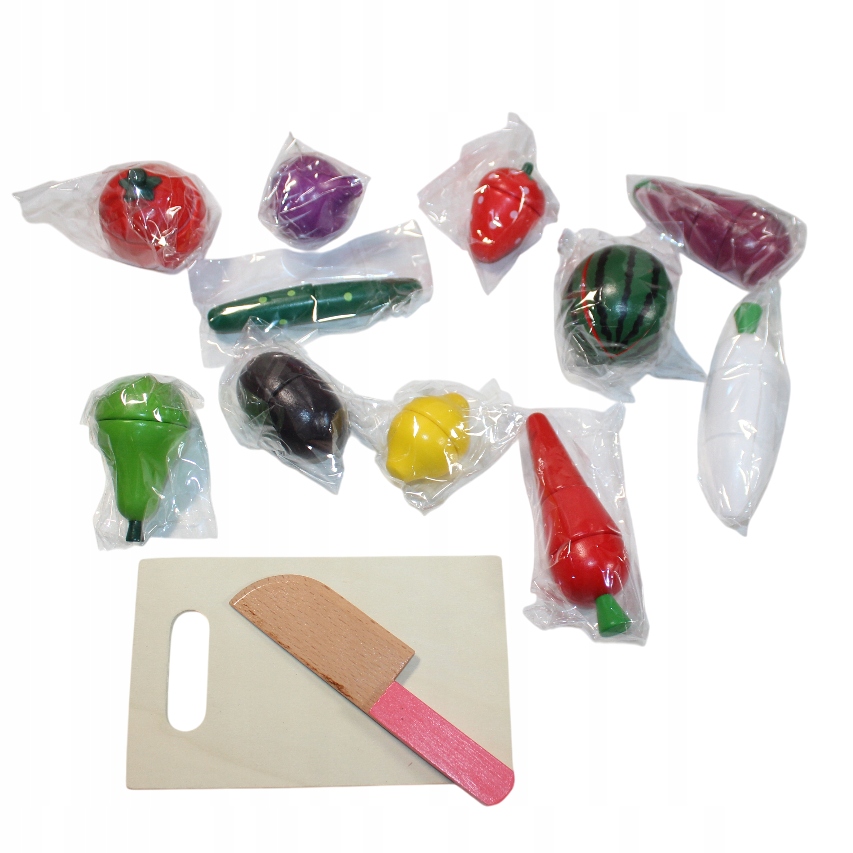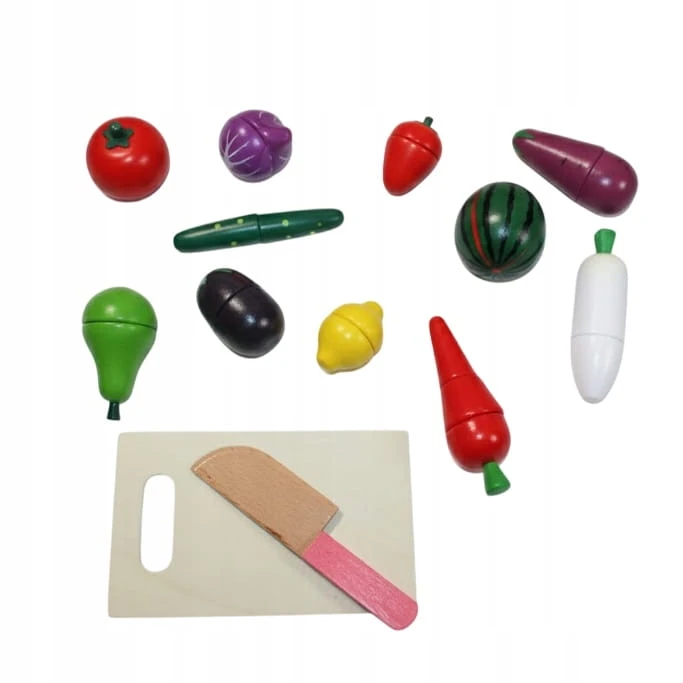 - Liczba elementów: Aż 30 części! (w tym warzywa/owoce, nożyk, deska)
