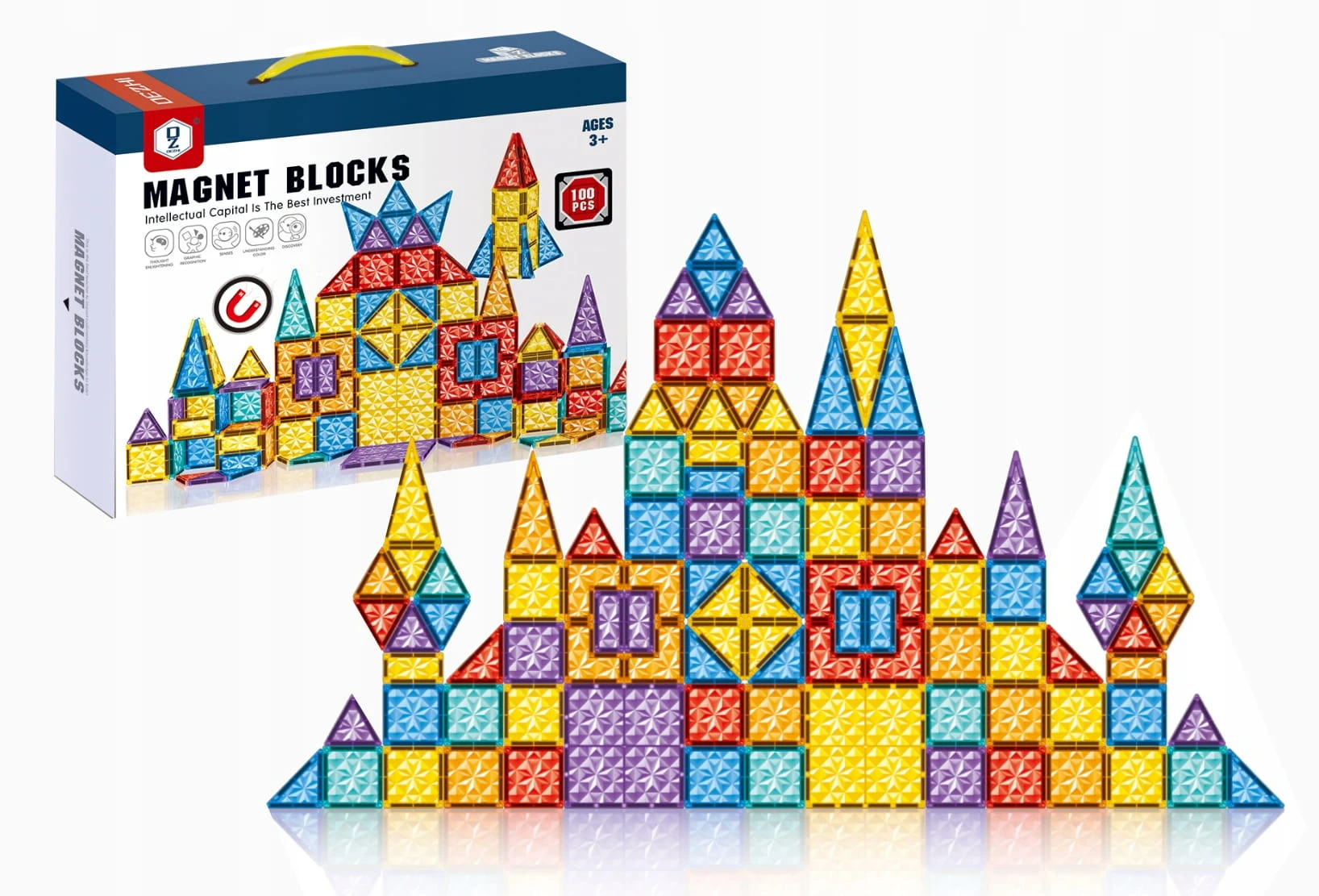 Duże Klocki Magnetyczne 3D Zestaw 100 elementów Edukacyjny Konstrukcyjny