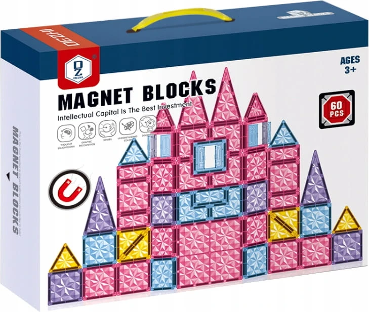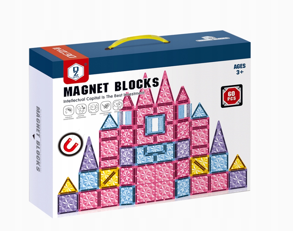 Duże Klocki Magnetyczne 3D Zestaw 60el Edukacyjne Nauka i Zabawa Dla Dzieci