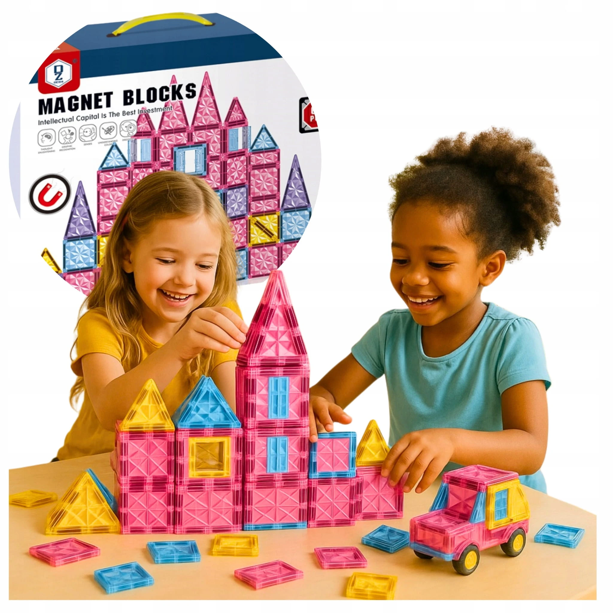Szukasz prezentu, który zachwyci każde dziecko? Magnetyczne klocki edukacyjne to absolutny hit, którego nie może zabraknąć w dziecięcym pokoju! Każde dziecko kocha klocki, a te są wyjątkowe – dają nieograniczone możliwości tworzenia, rozwijając wyobraźnię i kreatywność na zupełnie nowym poziomie.