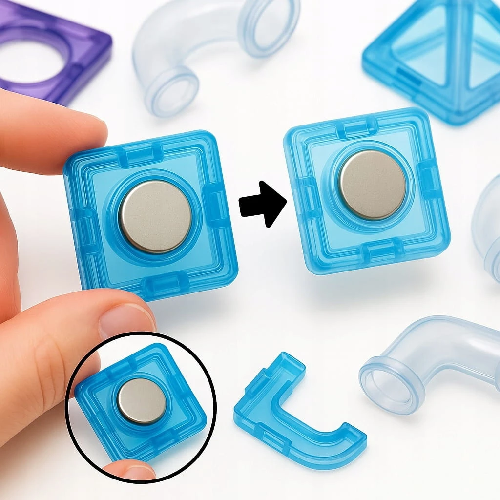 ✅ Rozwój motoryki i zręczności – budowanie torów kulkowych z magnetycznych elementów to świetne ćwiczenie dla małych rączek, które uczą się precyzji i kontroli ruchu.
