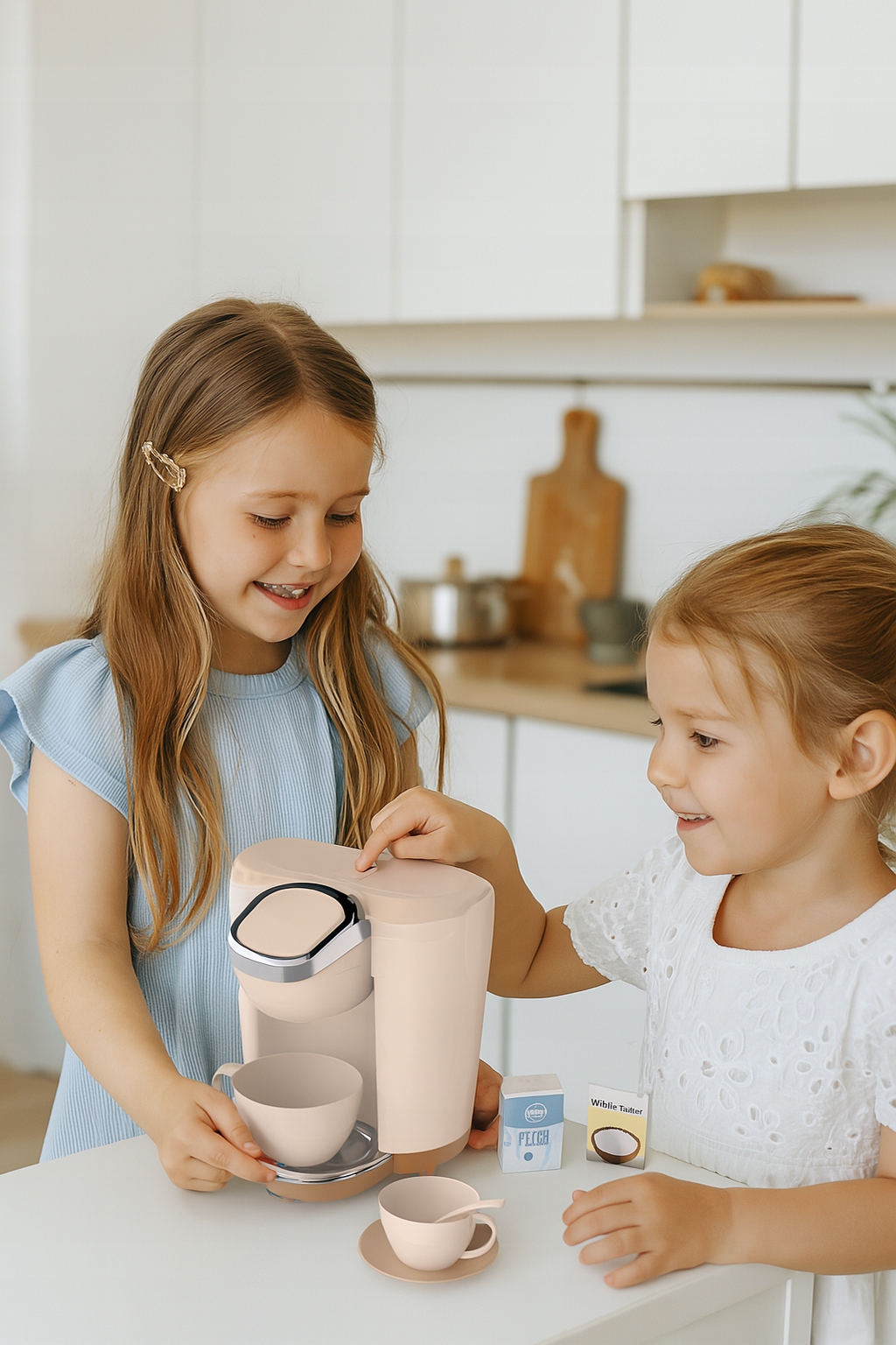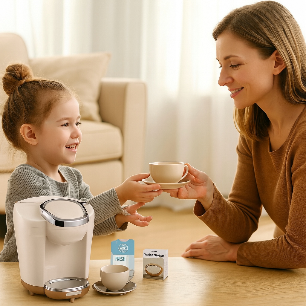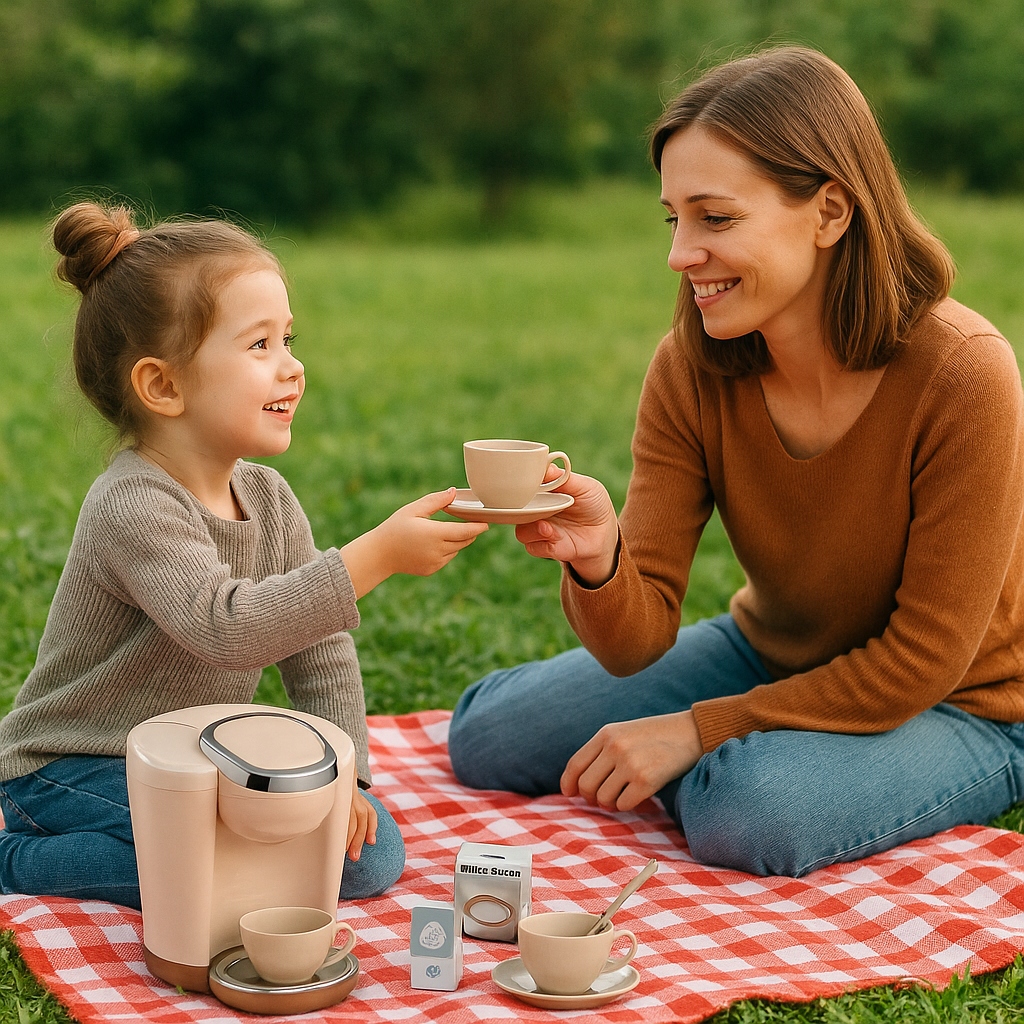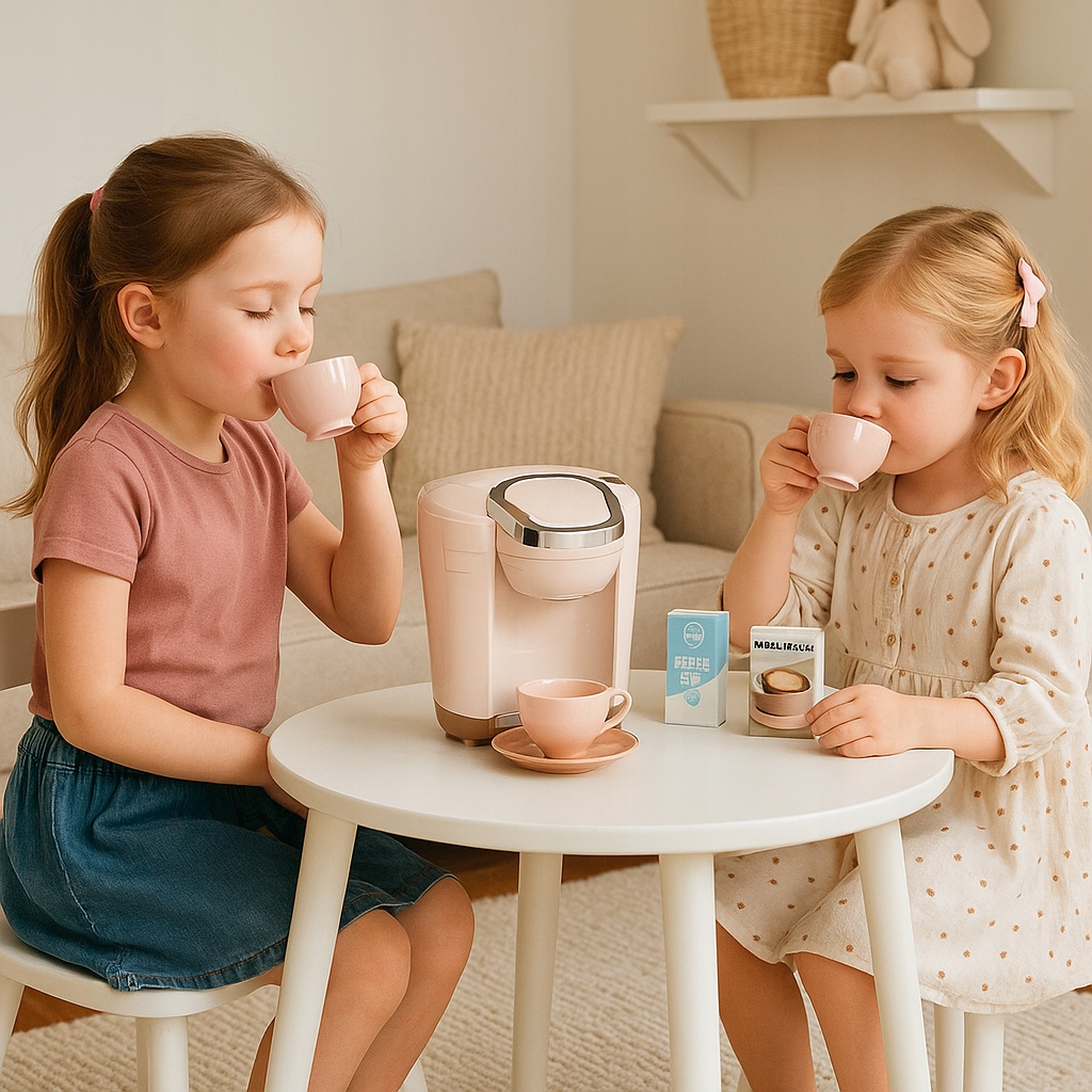 Zabawkowy ekspres do kawy sprawdzi się podczas zabawy w dom, kawiarnię, biuro czy na przyjęciu wyprawionym dla misiów i lali. Dzieci uwielbiają obserwować dorosłych a później naśladować ich podczas zabawy.