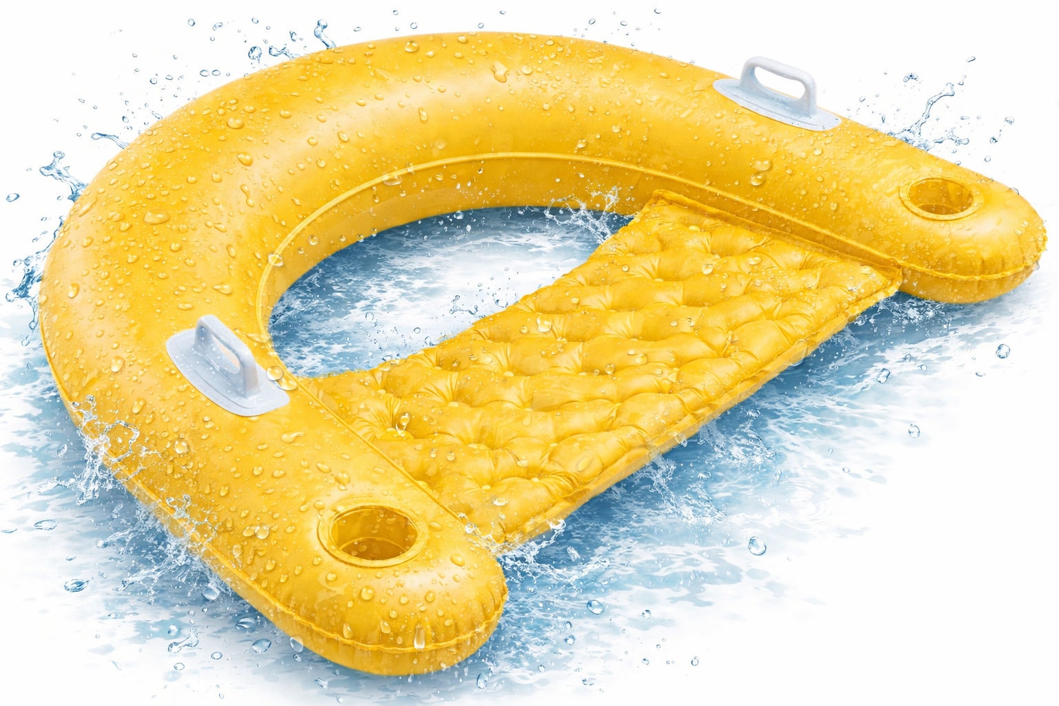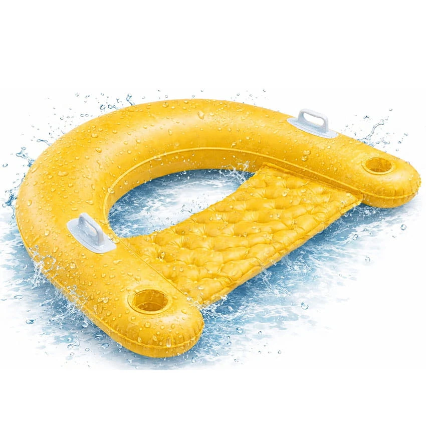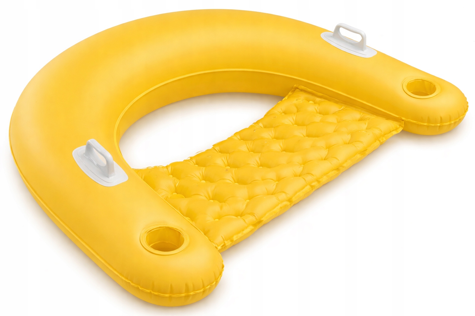 Fotel dmuchany do basenu z uchwytami żółty miejsce na napój materac wodny