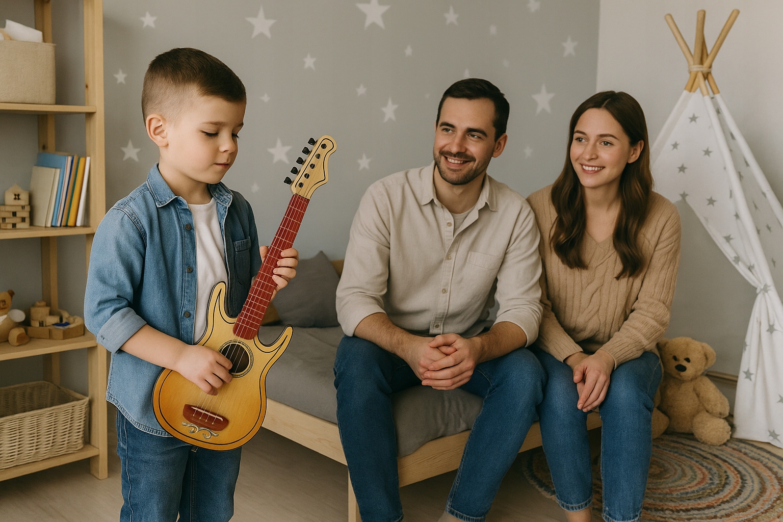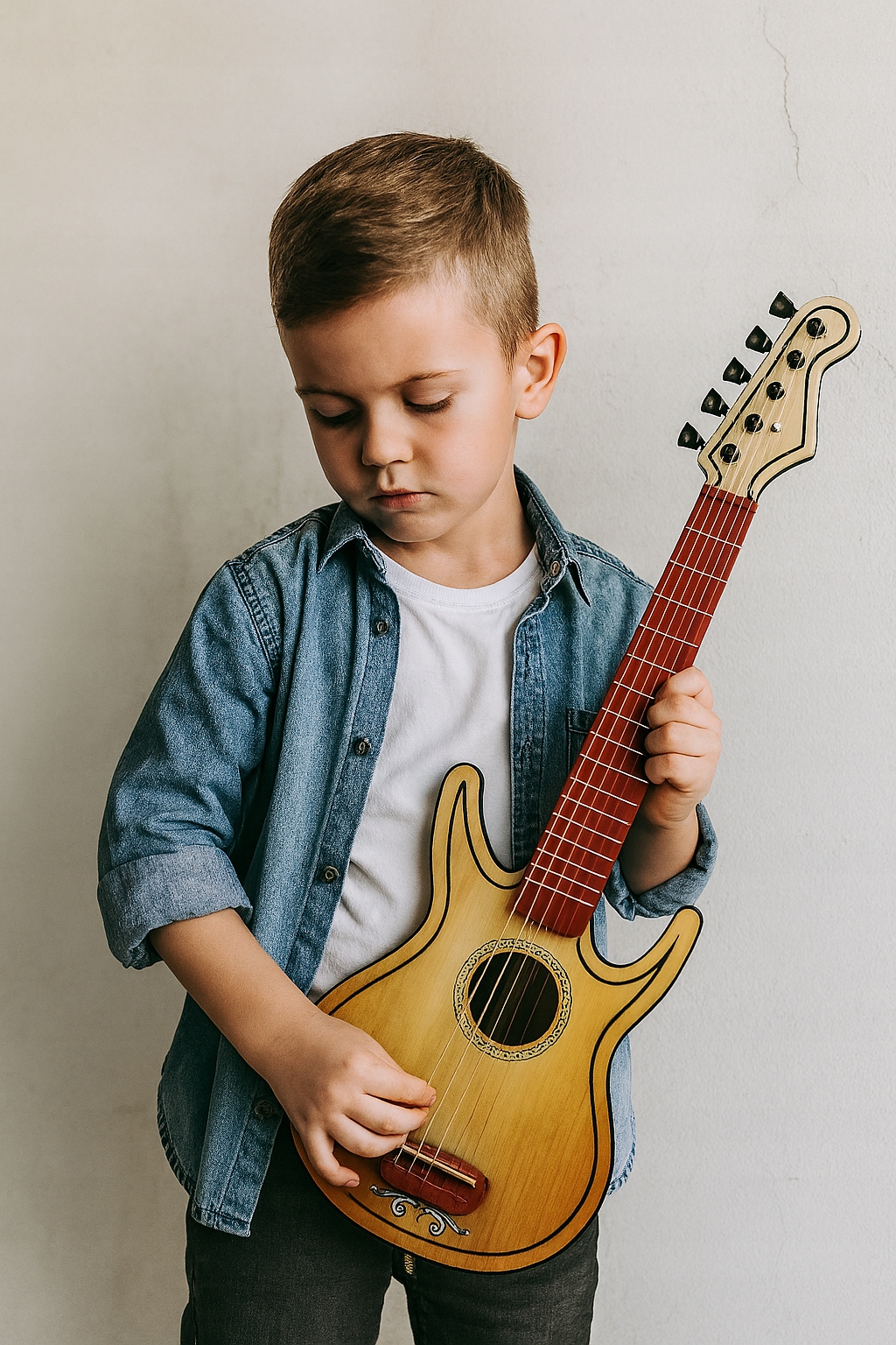 Zalety produktu: poprawa koncentracji i podzielności uwagi, rozbudzanie w dziecku pasji, możliwość strojenia jak prawdziwej gitary.