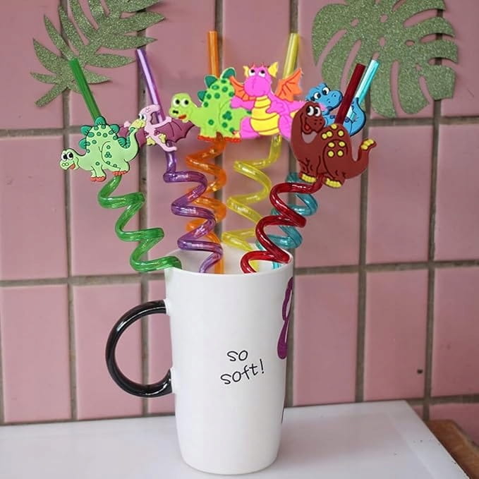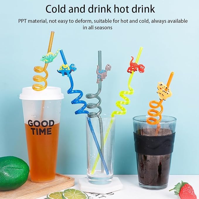 Plastikowe słomki są wielokrotnego użytku, wytrzymałe i trwałe, nie odkształcają się łatwo; na każdej kolorowej słomce znajduje się uroczy dinozaur, który porusza się jak żywy, co sprawi, że dzieci pokochają picie wody.