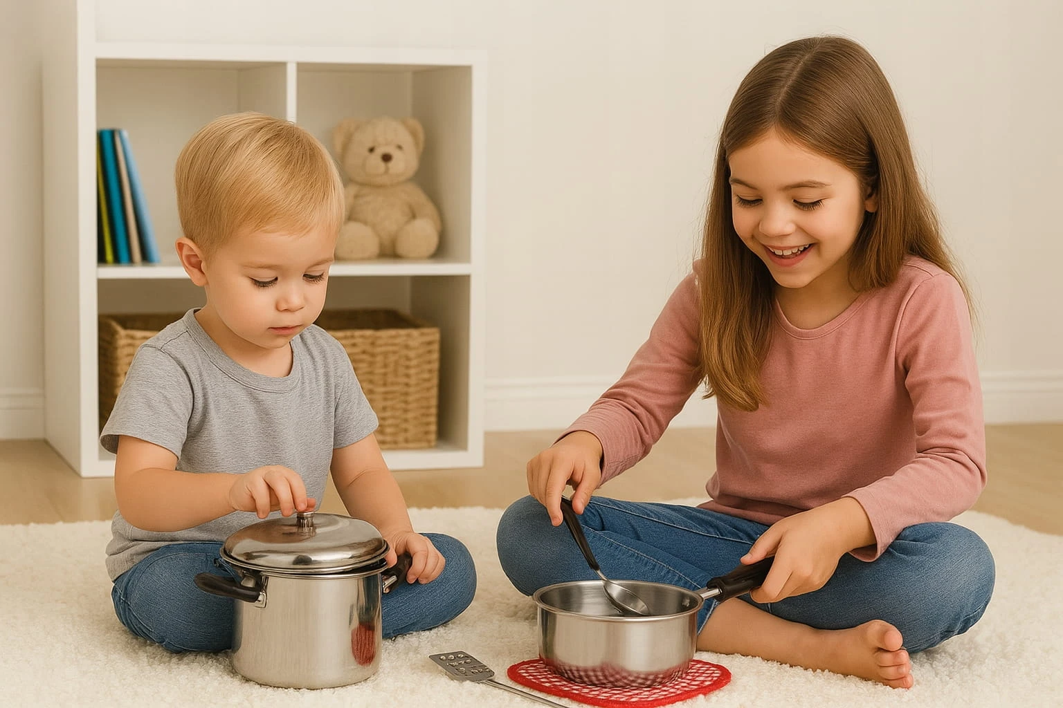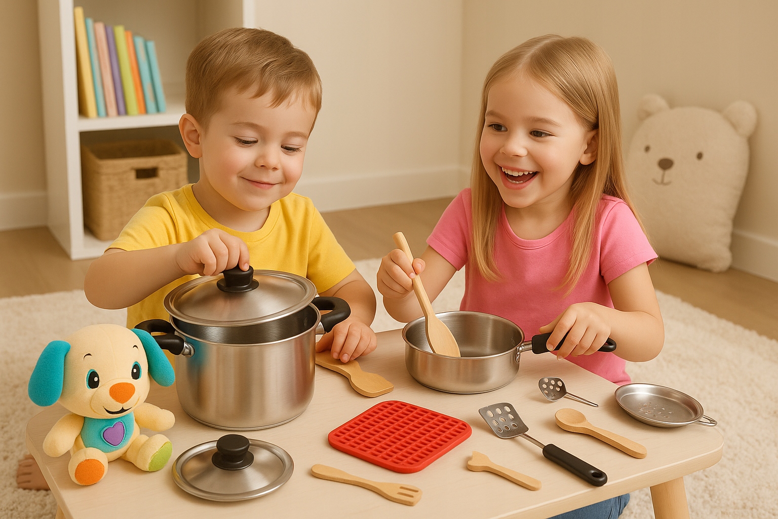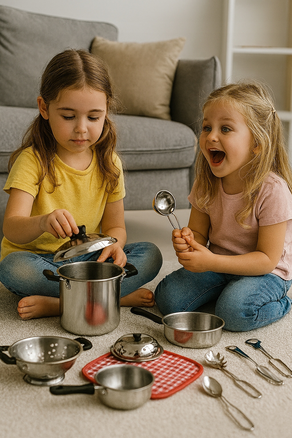 Cały zestaw wykonany jest ze stali nierdzewnej i genialnie imituje prawdziwe garnki kuchenne. Doskonała i długa rozrywka, która łączy zabawę z nauką. Dokładne repliki codziennych przyborów kuchennych, ale w mniejszym rozmiarze z myślą o dzieciach.