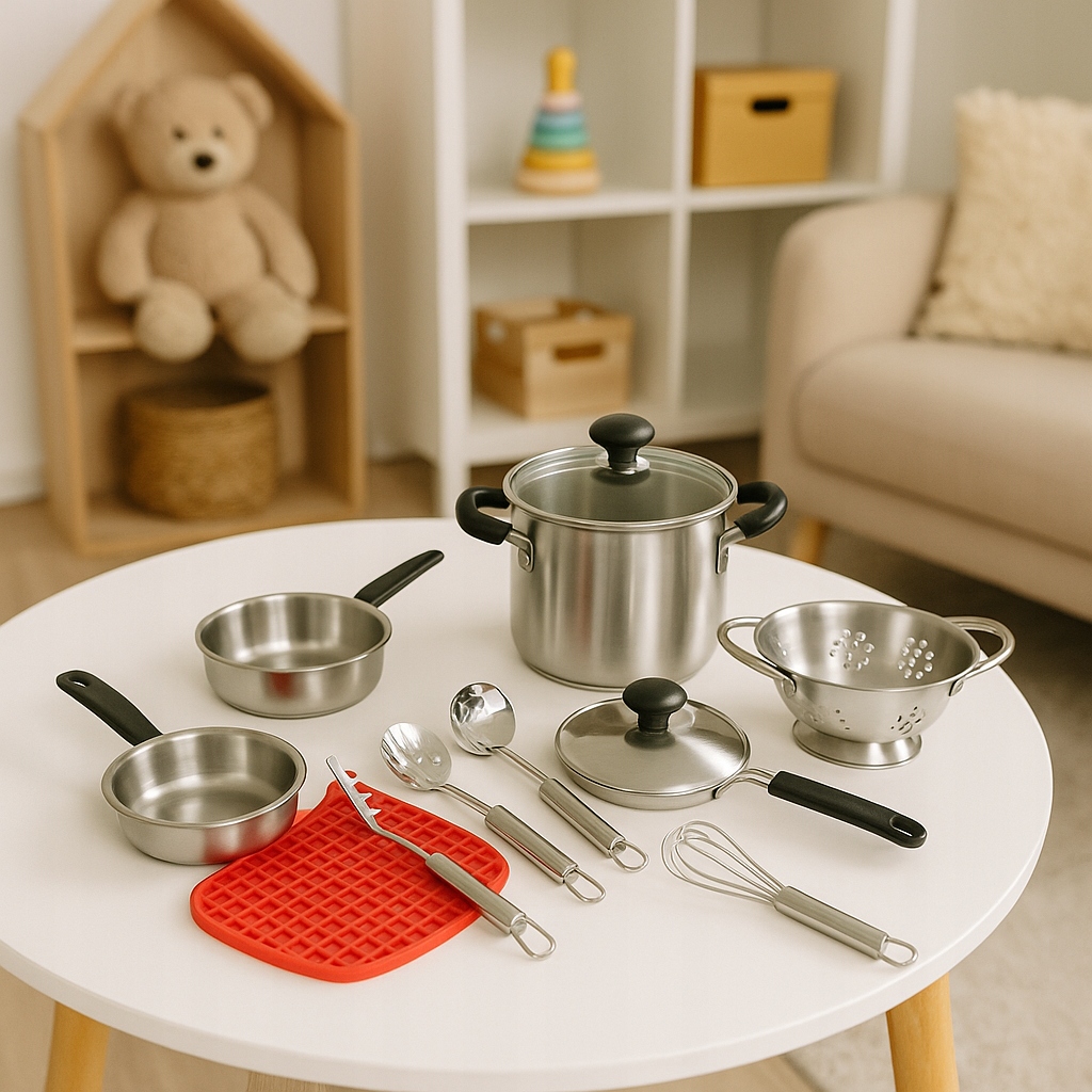 Garnki Metalowe dla Dzieci Duży Zestaw Akcesoria Kuchenne do Kuchni XXL
