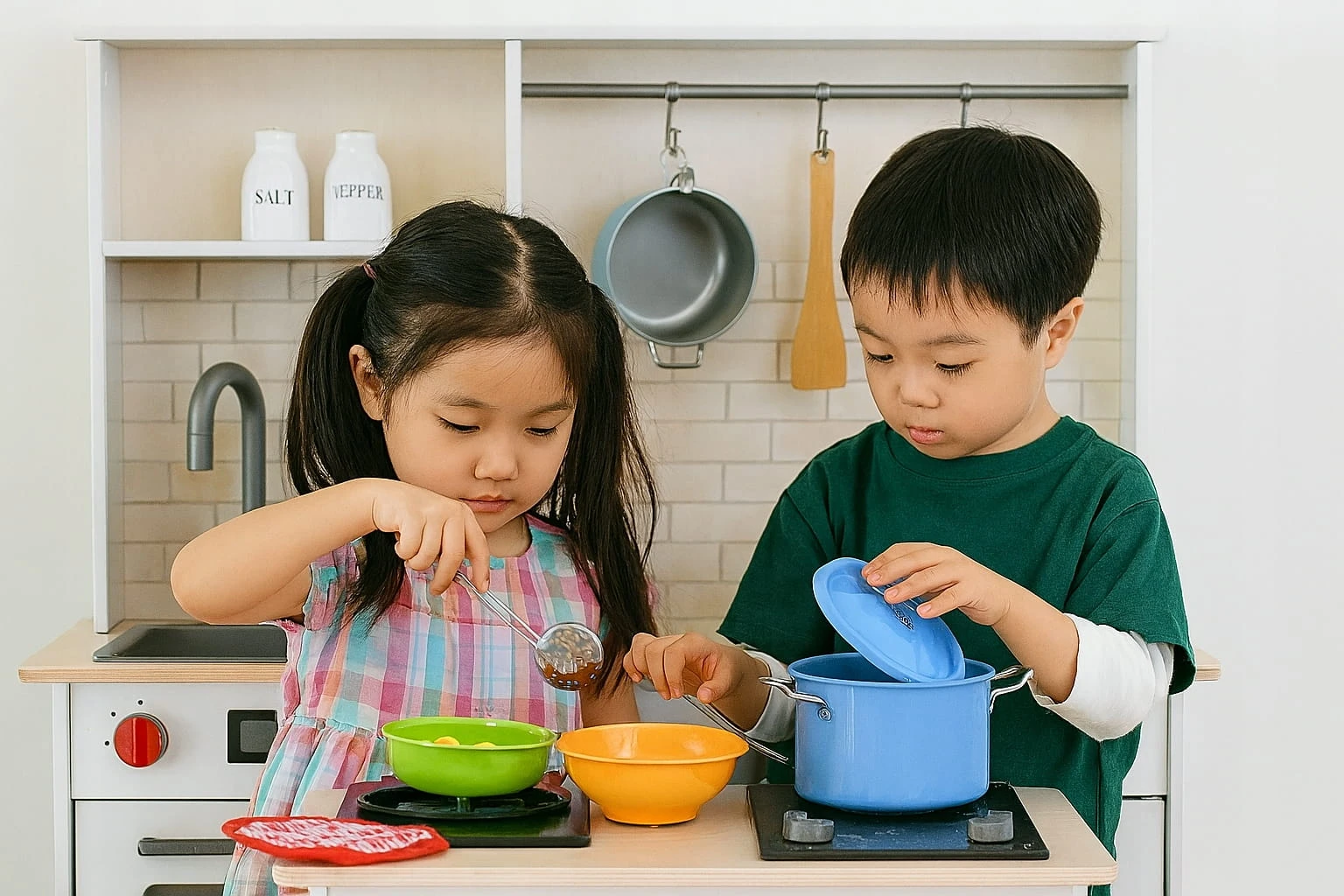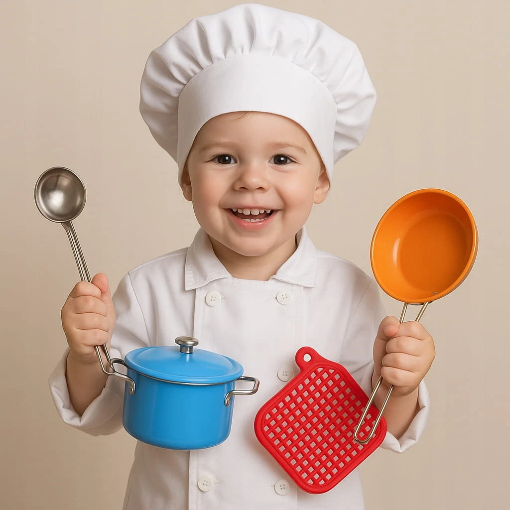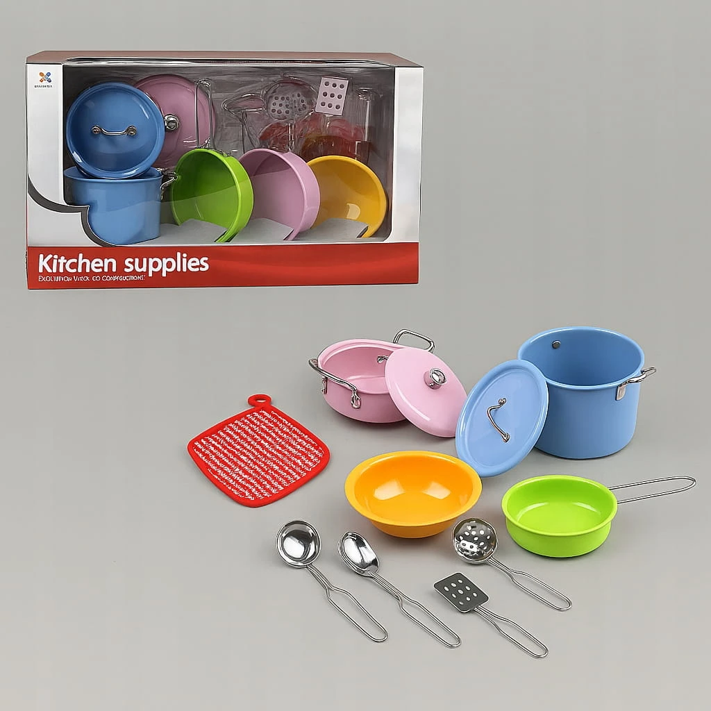 Zestaw kuchenny dla dzieci - akcesoria kuchenne dla dzieci oraz garnki o różnej wielkości. Doskonale sprawdzi się podczas zabawy w domu, w gotowanie. Kuchnie dla dzieci z takim wyposażeniem mogą sprawić, że zabawa w gotowanie może stać się pasją dziecka.