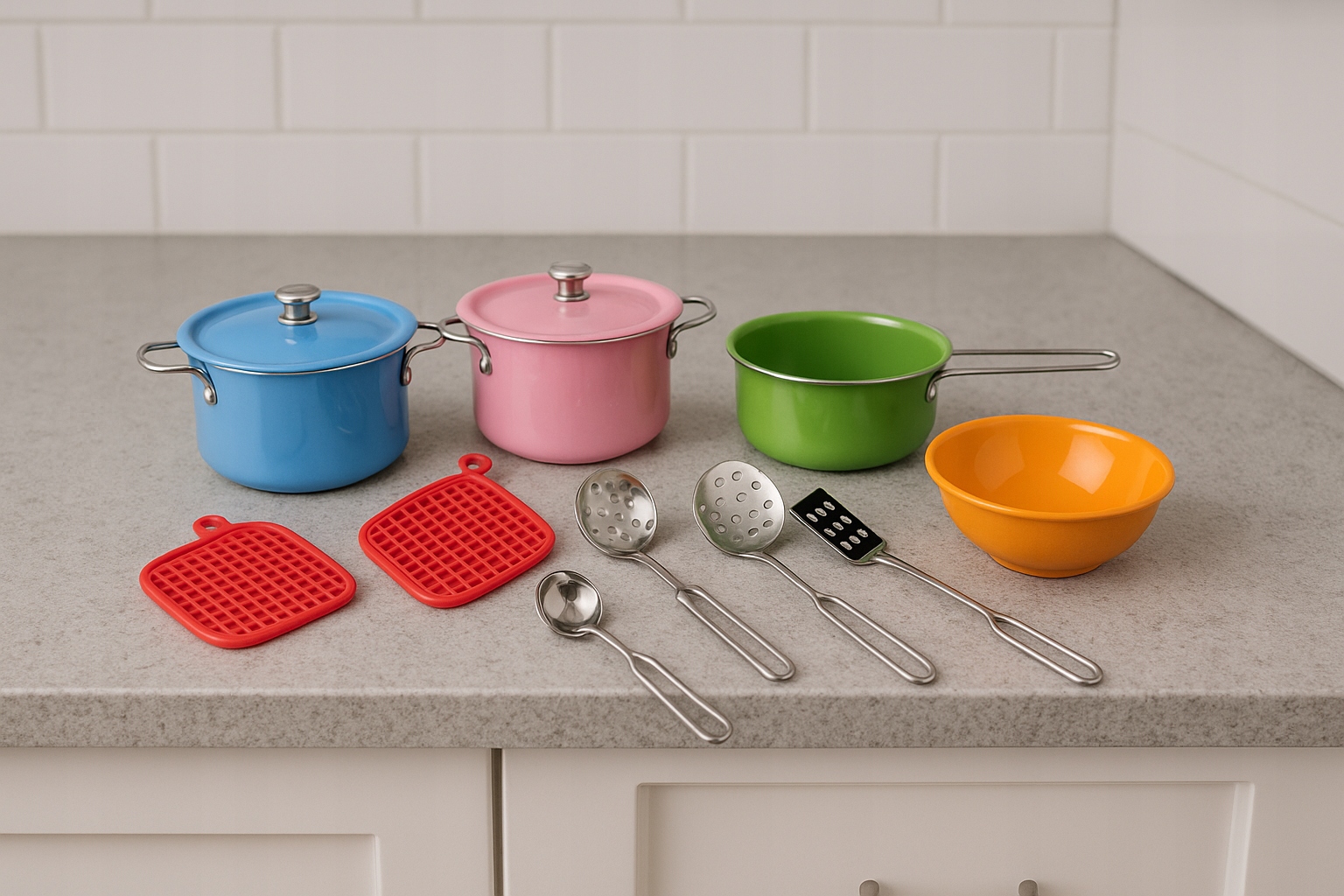 Garnki dla Dzieci Zestaw Kolorowych Garnków Akcesoria Przybory Kuchenne XXL