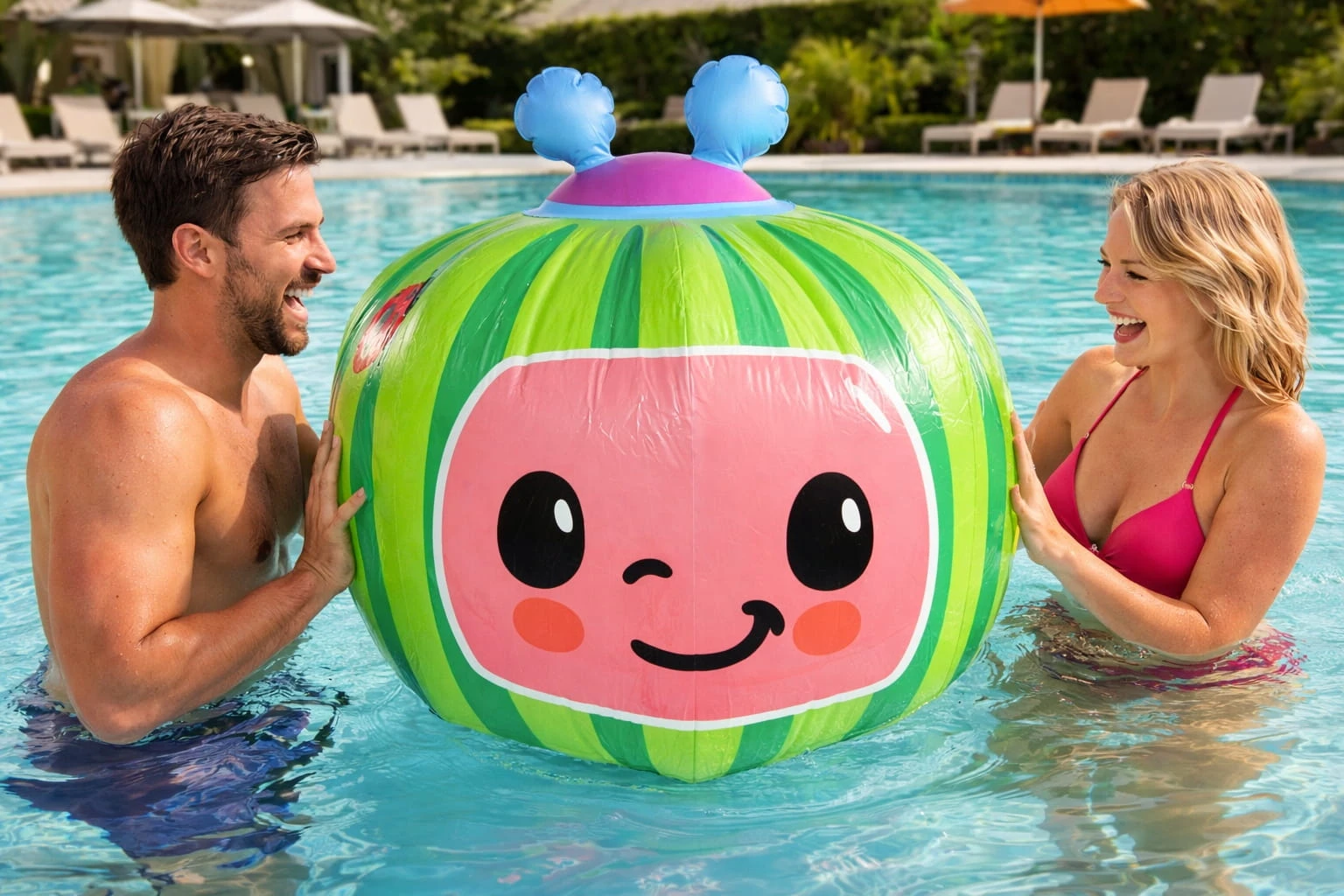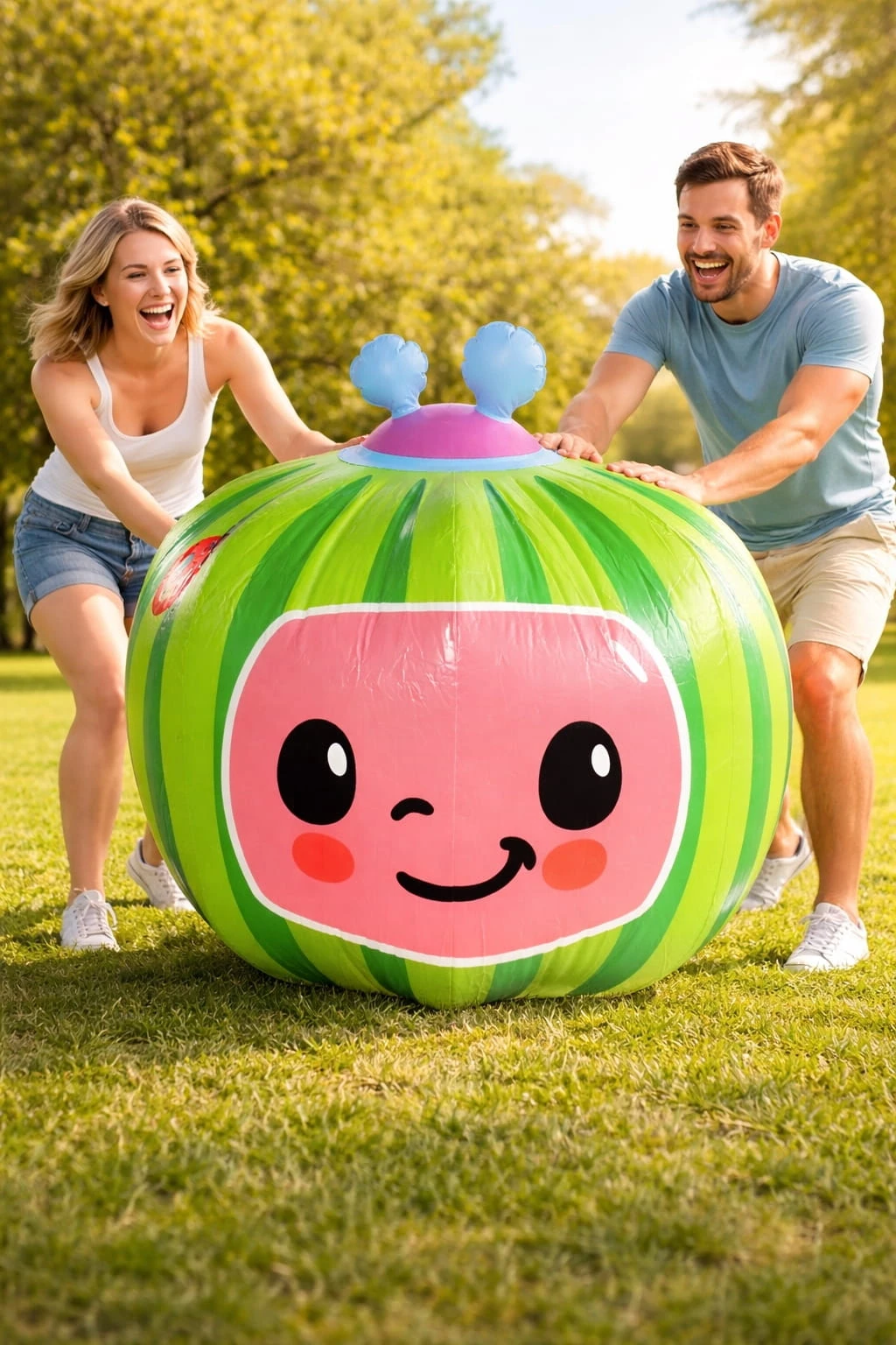 Ta gigantyczna dmuchana piłka arbuz 90 cm to HIT lata – przyciąga uwagę i gwarantuje świetną zabawę dla całej rodziny!