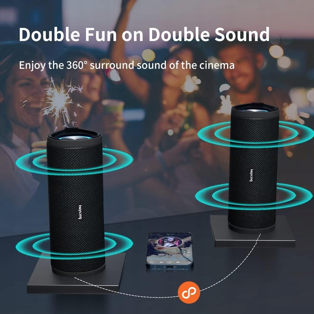 - ✔️Wzmocniony bas i podwójny dźwięk stereo Głośnik Bluetooth jest wyposażony w stereofoniczne głośniki audio o mocy 16 W i zaawansowany cyfrowy procesor sygnału, który wydobywa krystalicznie czyste wysokie tony, szczegółowe średnie i specjalnie wzmocnione basy przy dowolnej głośności. Możesz kupić dwa głośniki Bluetooth jednocześnie, aby naprawdę cieszyć się kinowym dźwiękiem przestrzennym, łącząc funkcję True Wireless Stereo, która zapewnia niezrównane wrażenia słuchowe.