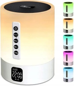 Wielofunkcyjny głośnik Bluetooth 5 w 1 LED: Głośnik Bluetooth 5.0 Hi-Fi + budzik z podświetleniem + ściemniacz dotykowy lampek nocnych + odtwarzacz MP3 + zestaw głośnomówiący