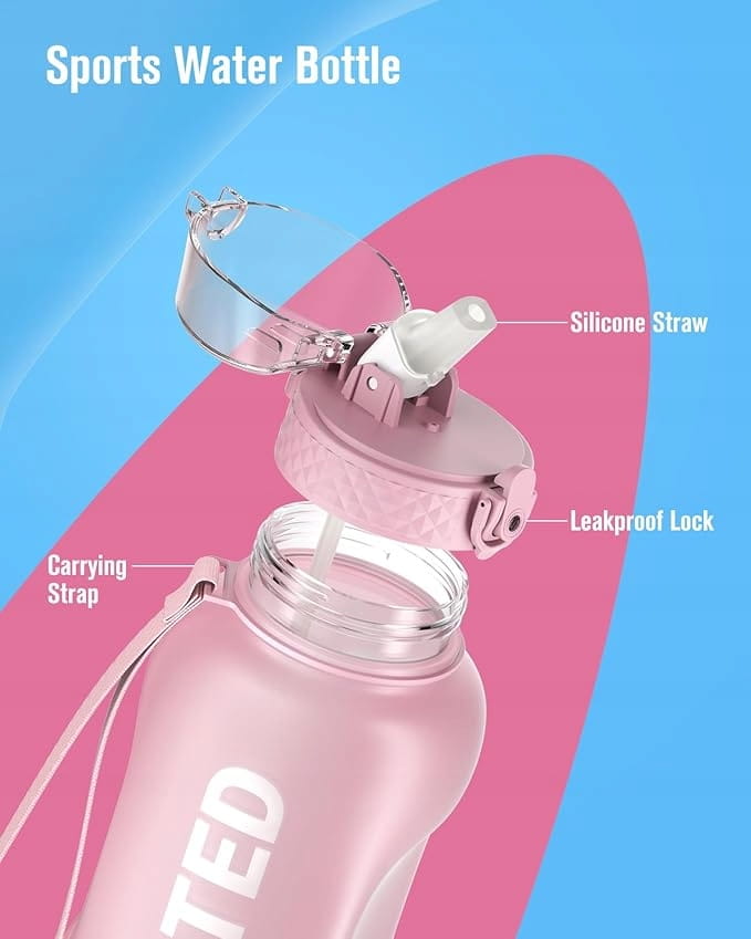 Ta butelka posiada oznaczenie poziomu wody, dzięki czemu możesz mieć oko na wchłanianie wody i pić wystarczającą ilość wody przez cały dzień, aby utrzymać się nawodnionym.