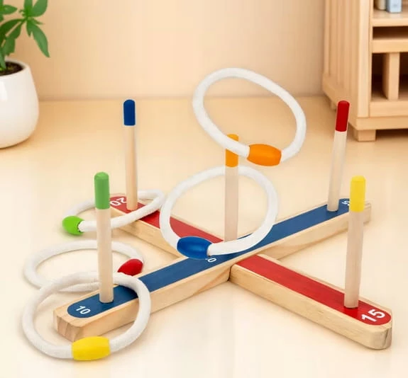 Szukasz sposobu na oderwanie dzieci od ekranów telefonu i telewizora? A może planujesz rodzinnego grilla i brakuje Ci atrakcji, która zintegruje gości? Drewniana gra „Rzut Obręczami” (Ring Toss) to strzał w dziesiątkę!