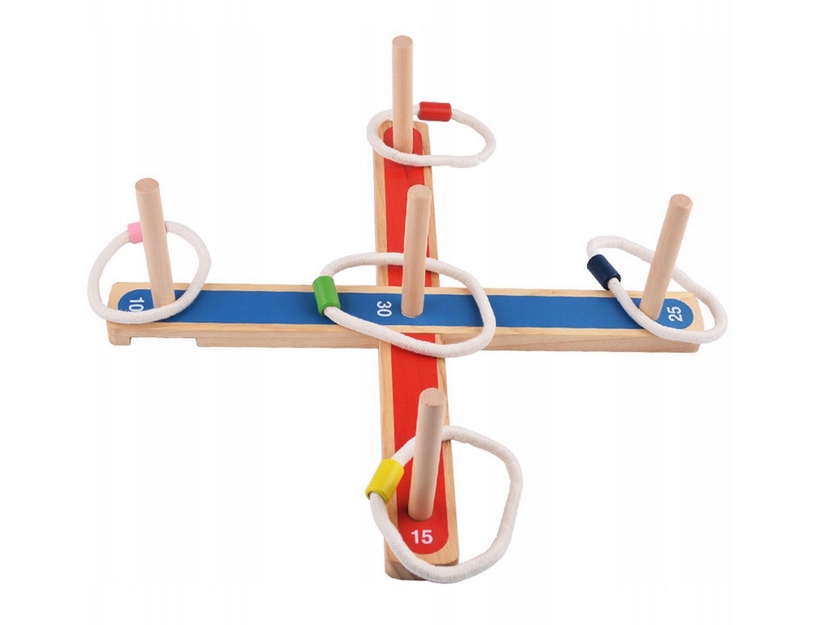 - Celem jest rzucenie obręczą tak, aby zawisła na jednym z palików.