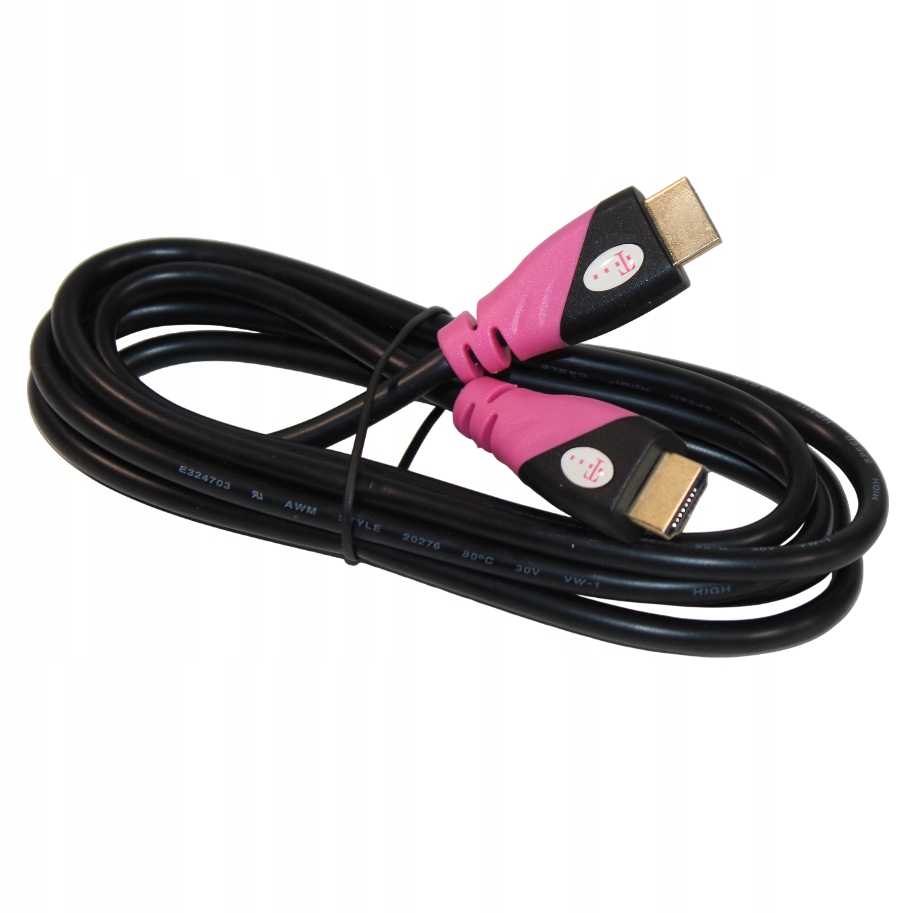 Przedstawiony na zdjęciu produkt to kabel HDMI marki T-Mobile, służący do transmisji cyfrowego sygnału audio i wideo.