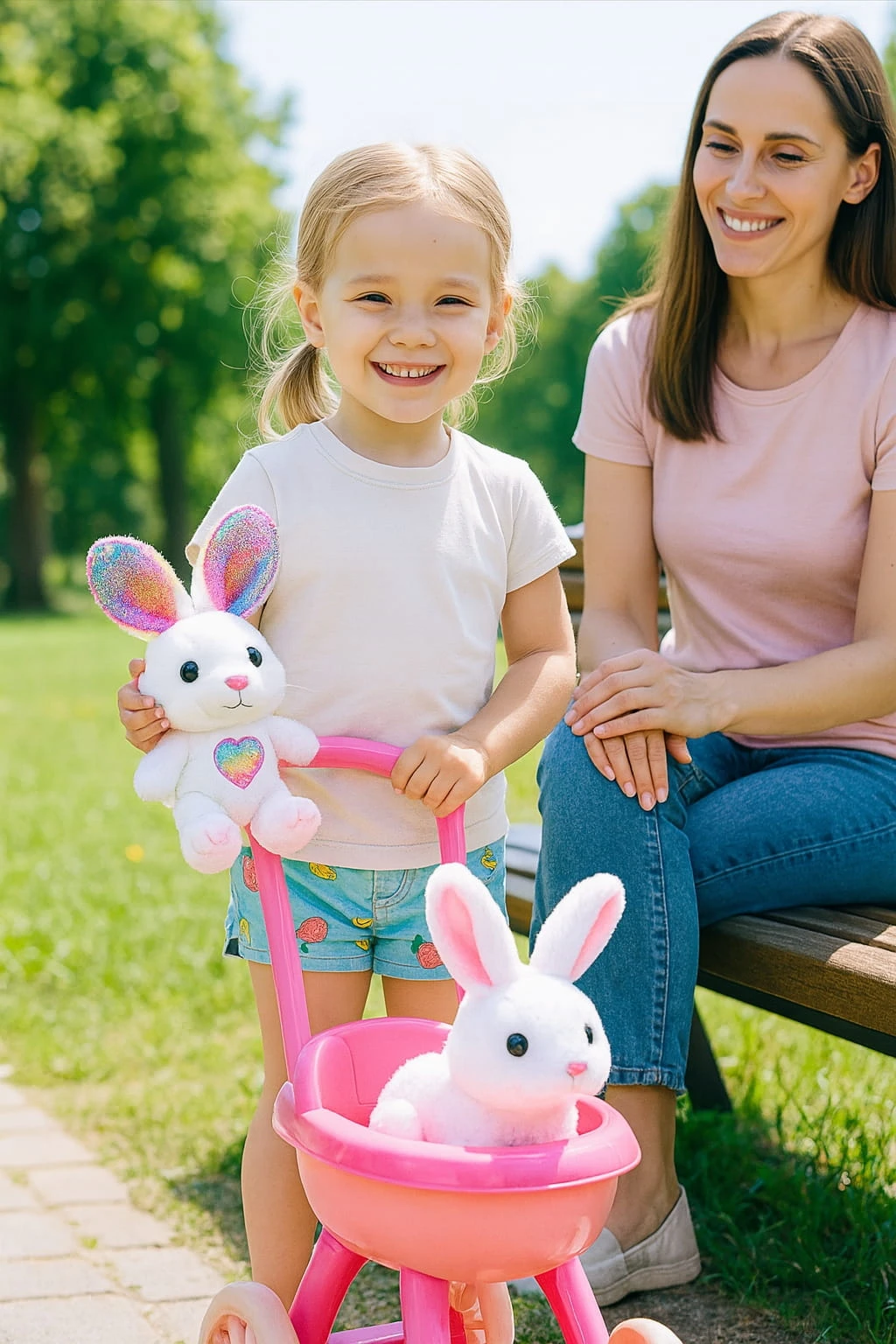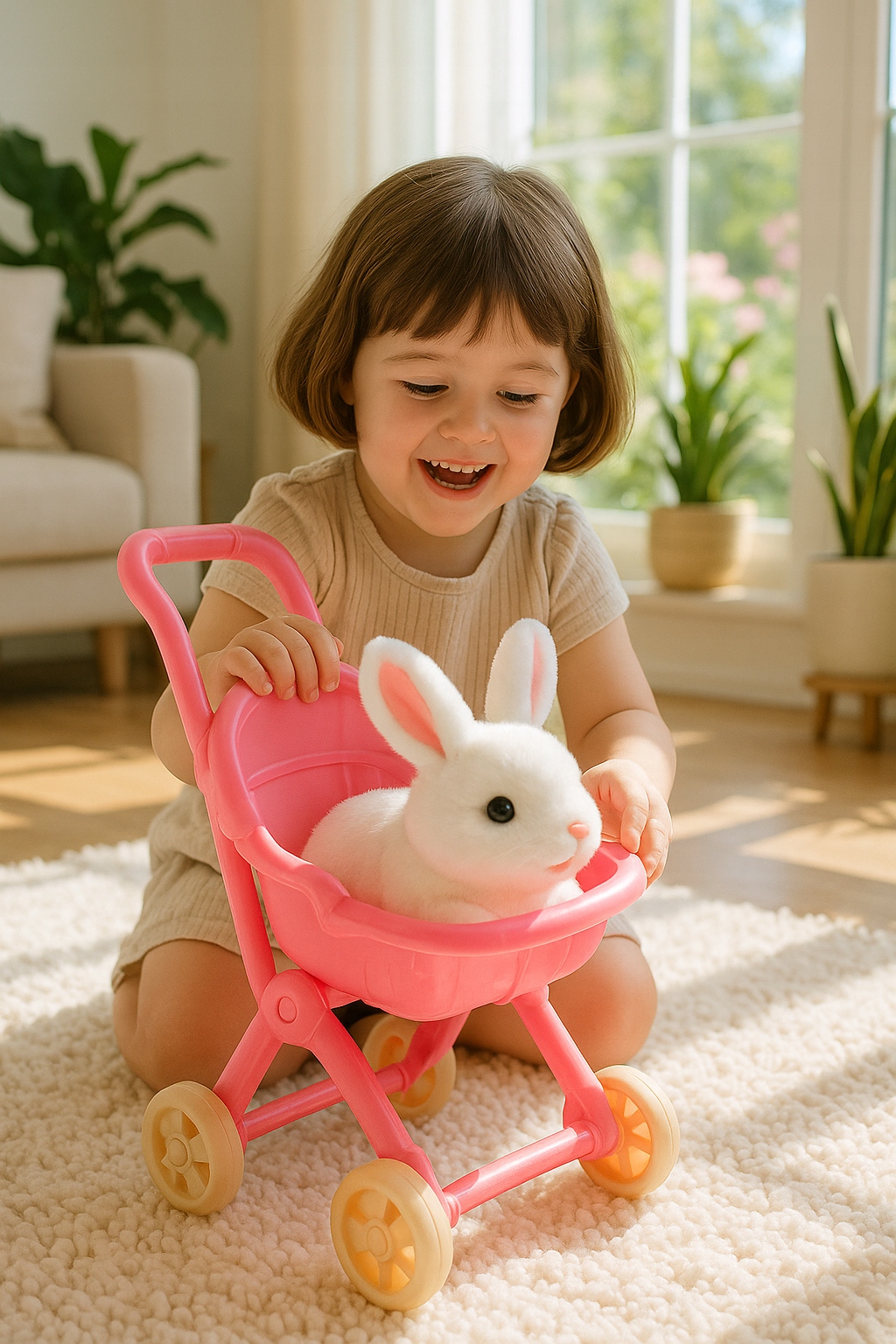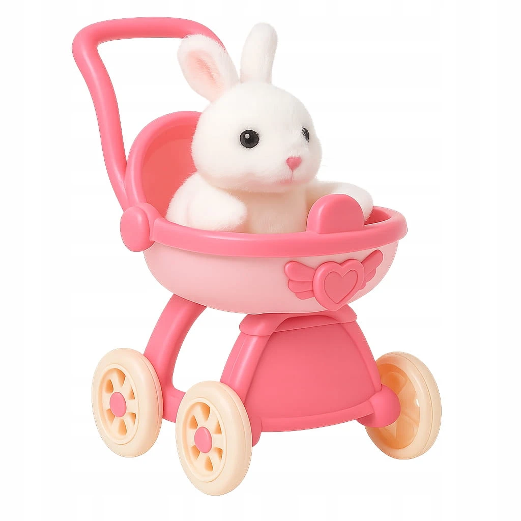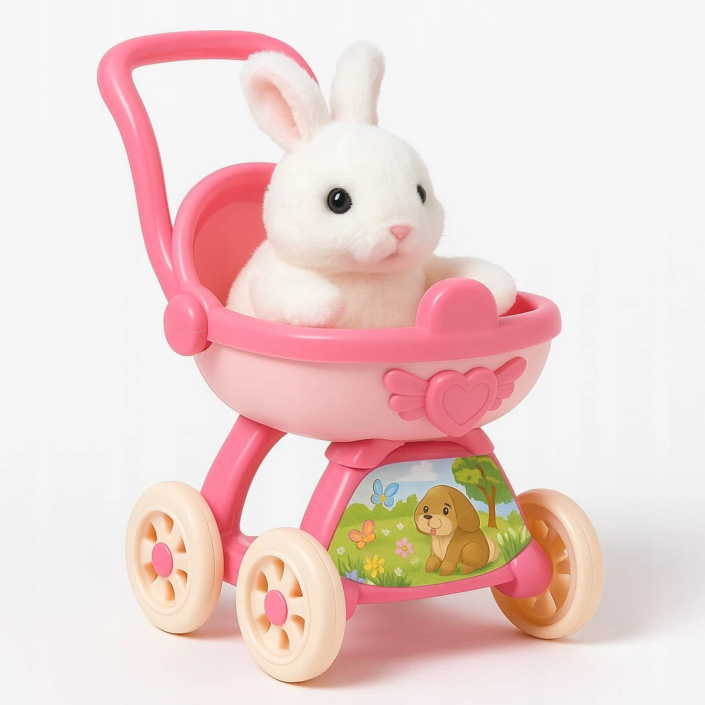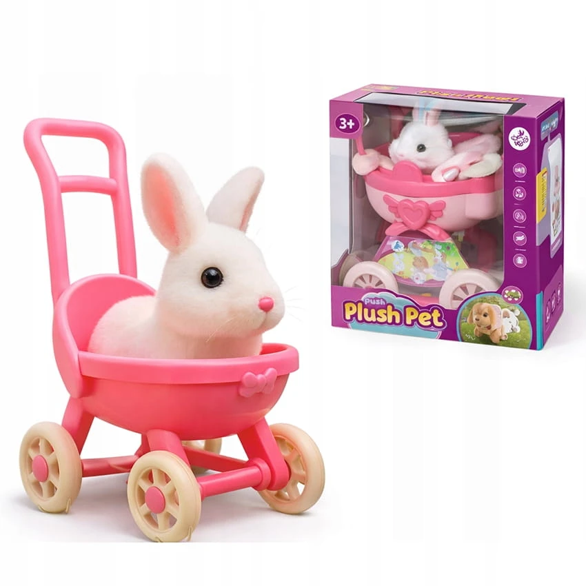 Interaktywny Królik Rusza Uszami Króliczek + Wózek Różowy Zestaw dla Dzieci