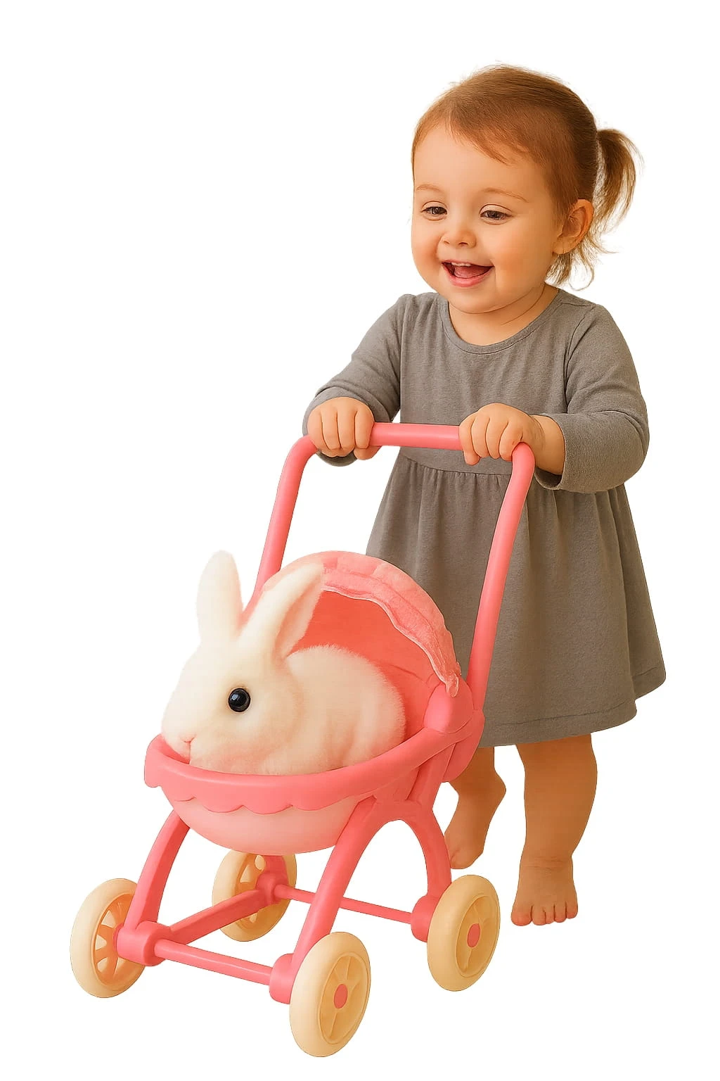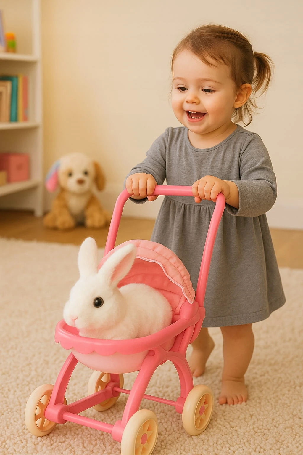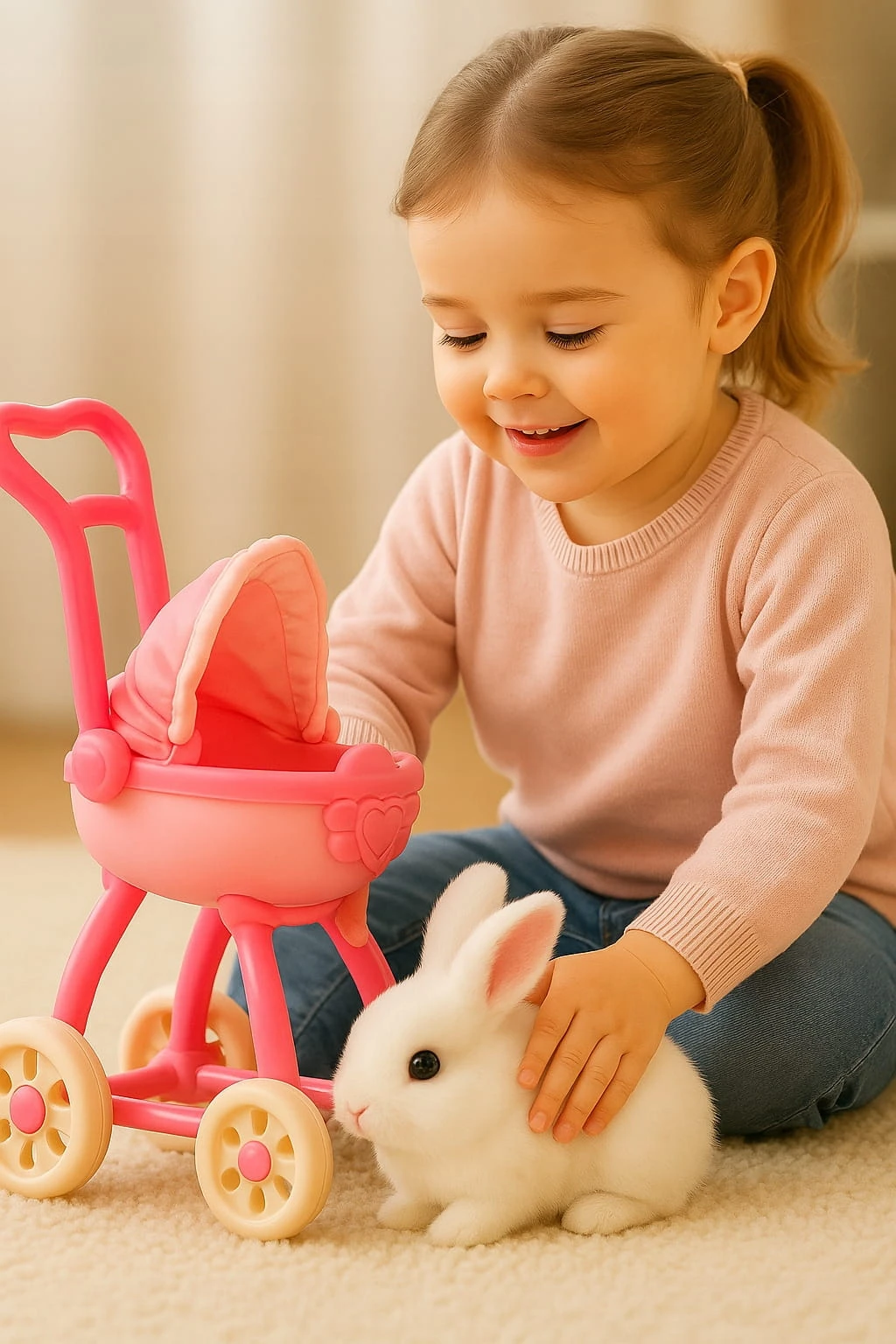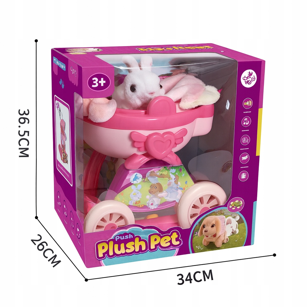 ⭐ Interaktywny Królik Rusza Uszami Króliczek + Wózek Różowy Zestaw dla Dzieci ⭐