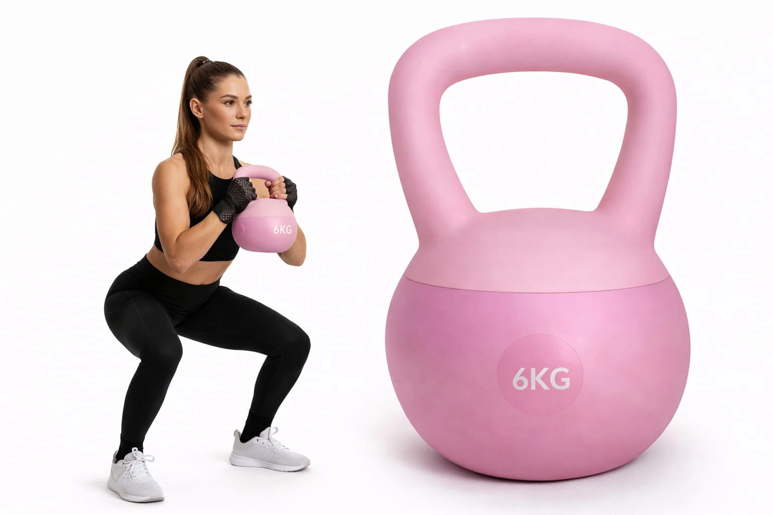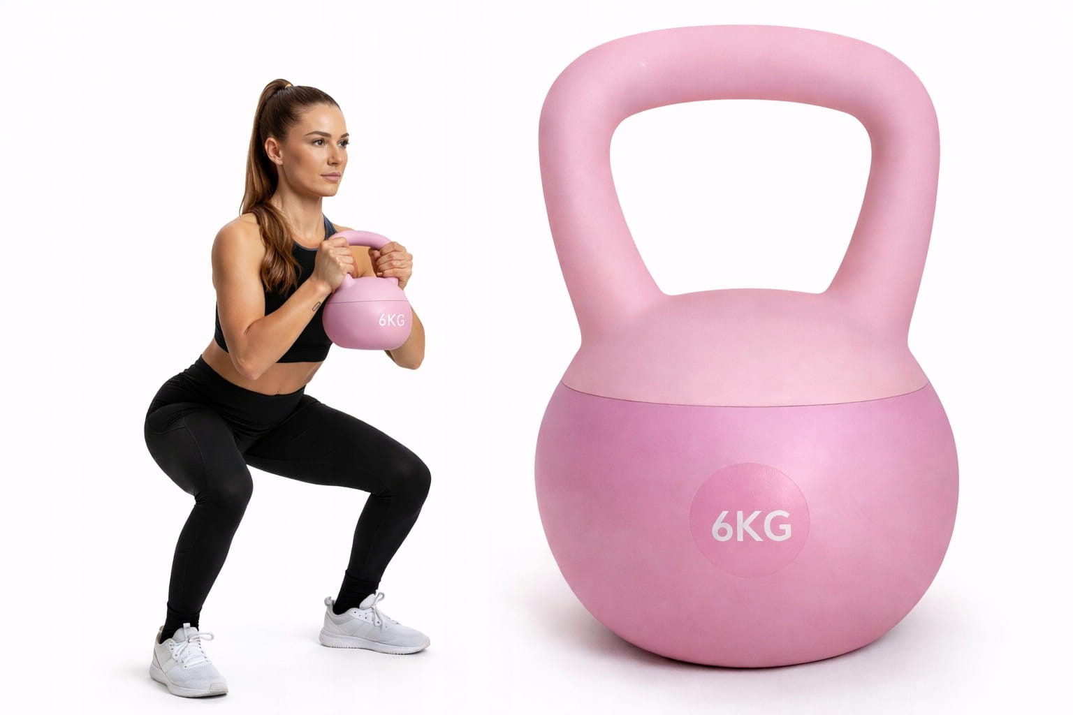 KETTLEBELL 6 kg miękki ketle kula hantla FITNESS trening w domu róż gratis