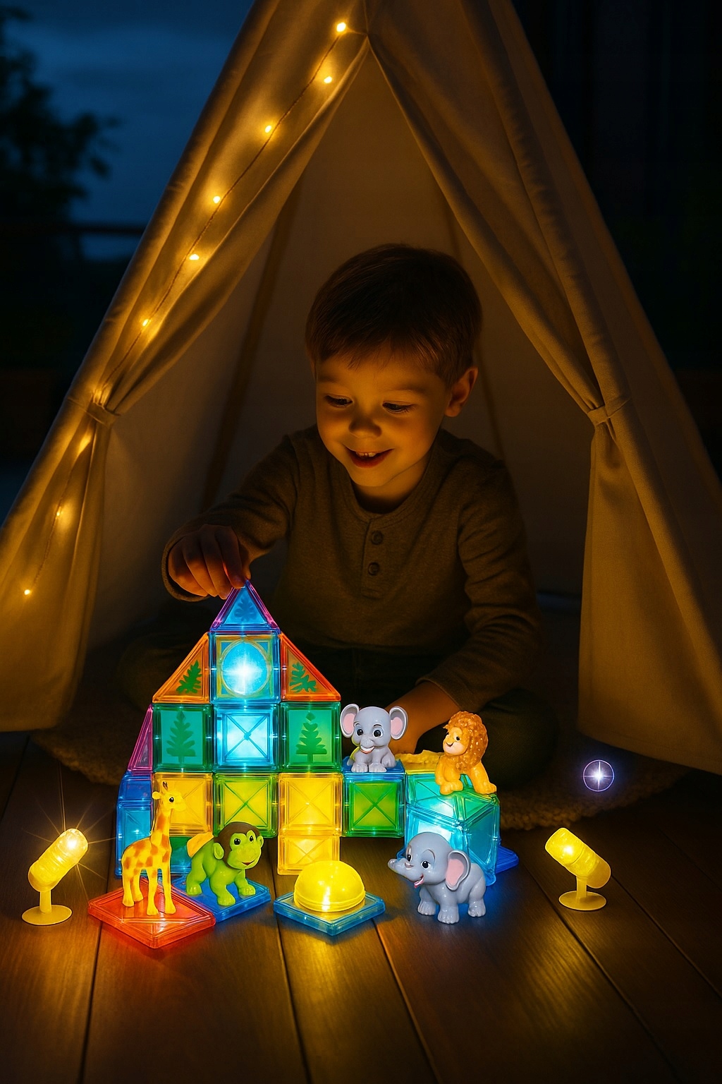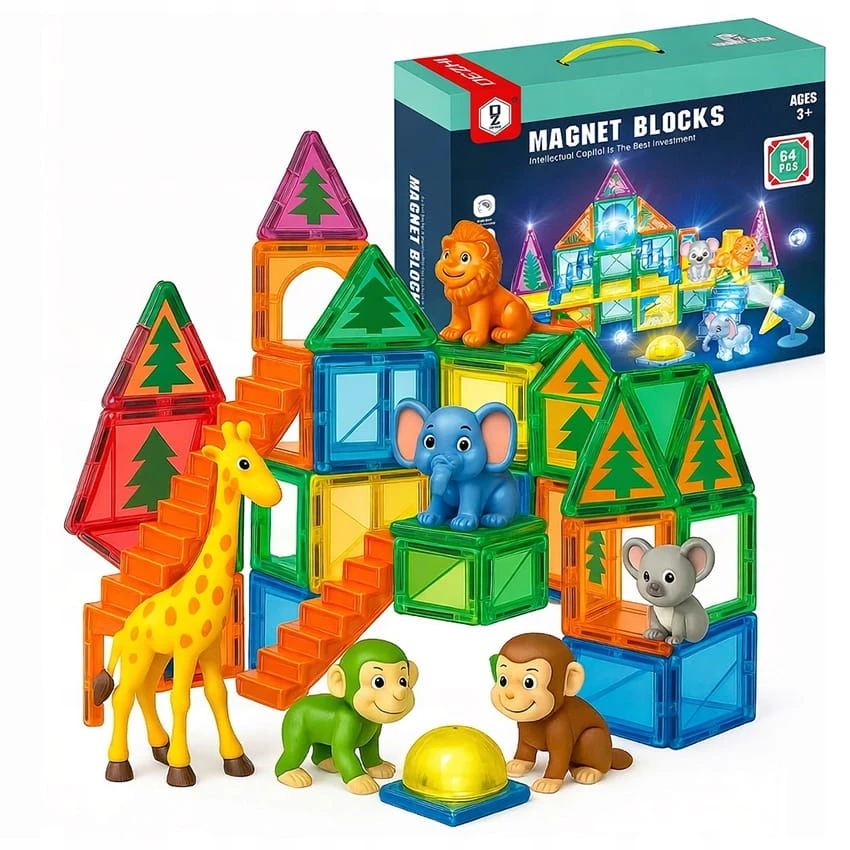 Klocki magnetyczne to innowacyjna zabawka edukacyjna, która łączy w sobie kreatywność, naukę i nieskończone możliwości konstrukcyjne. Każdy zestaw składa się z różnorodnych brył – kwadratów, trójkątów, łuków, rurek i modułów świetlnych – wykonanych z trwałego, pół–transparentnego tworzywa, w żywych, przyciągających wzrok kolorach. Wbudowane w ścianki potężne, bezpieczne magnesy pozwalają dzieciom łatwo łączyć elementy w stabilne konstrukcje, a jednocześnie błyskawicznie je rozdzielać, rozwijając motorykę małą i umiejętność rozpoznawania kształtów.