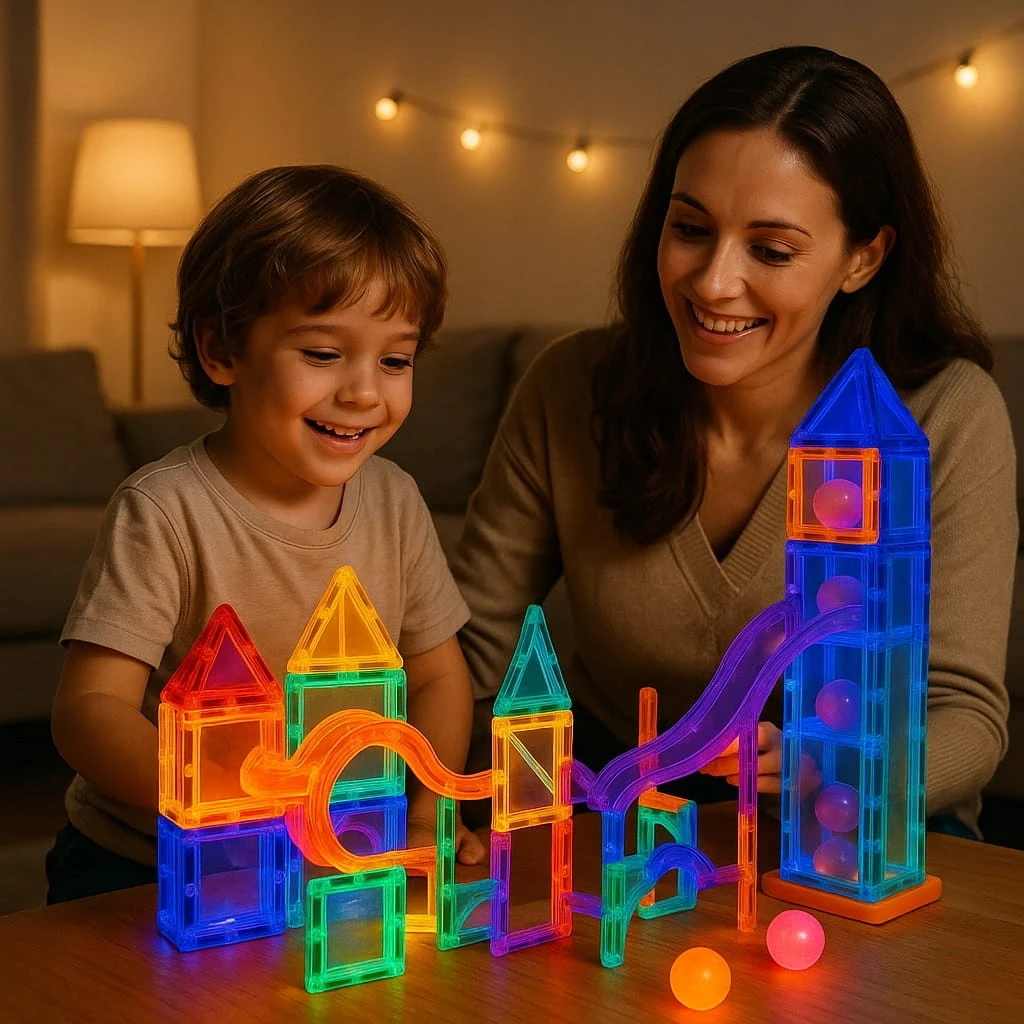 Klocki magnetyczne to innowacyjna zabawka edukacyjna, która łączy w sobie kreatywność, naukę i nieskończone możliwości konstrukcyjne. Każdy zestaw składa się z różnorodnych brył – kwadratów, trójkątów, łuków, rurek i modułów świetlnych – wykonanych z trwałego, pół–transparentnego tworzywa, w żywych, przyciągających wzrok kolorach. Wbudowane w ścianki potężne, bezpieczne magnesy pozwalają dzieciom łatwo łączyć elementy w stabilne konstrukcje, a jednocześnie błyskawicznie je rozdzielać, rozwijając motorykę małą i umiejętność rozpoznawania kształtów.