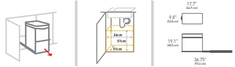 KOSZ NA ŚMIECI Simplehuman Podblatowy Wysuwany do zabudowy 30 l Czarny