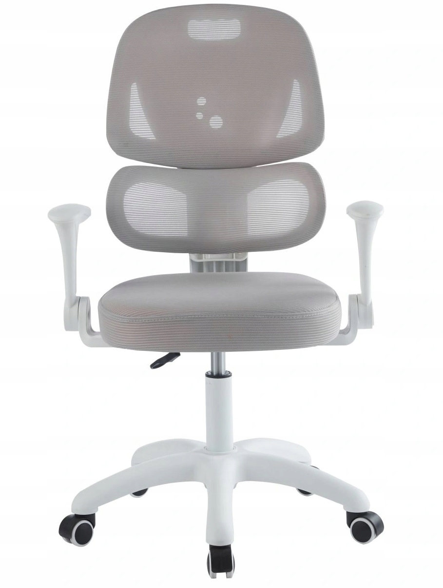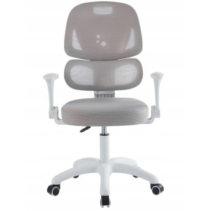 Fotel obrotowy to znakomita propozycja krzesła do biurka dla Twojego dziecka, które łączy funkcjonalność z estetyką, stając się doskonałą ozdobą pokoju dziecięcego. Tapicerka w pięknym SZARYM kolorze w połączeniu z białą konstrukcją wprowadza do wnętrza delikatność doskonałą do dziewczęcego pokoju. Dzięki regulowanej wysokości siedziska, fotel można dostosować tak, aby siedzenie przy biurku było wygodne i komfortowe dla Twojego dziecka. Możliwość regulacji wysokości oparcia zapewnia prawidłową postawę podczas odrabiania lekcji lub wykonywania ulubionych prac plastycznych.