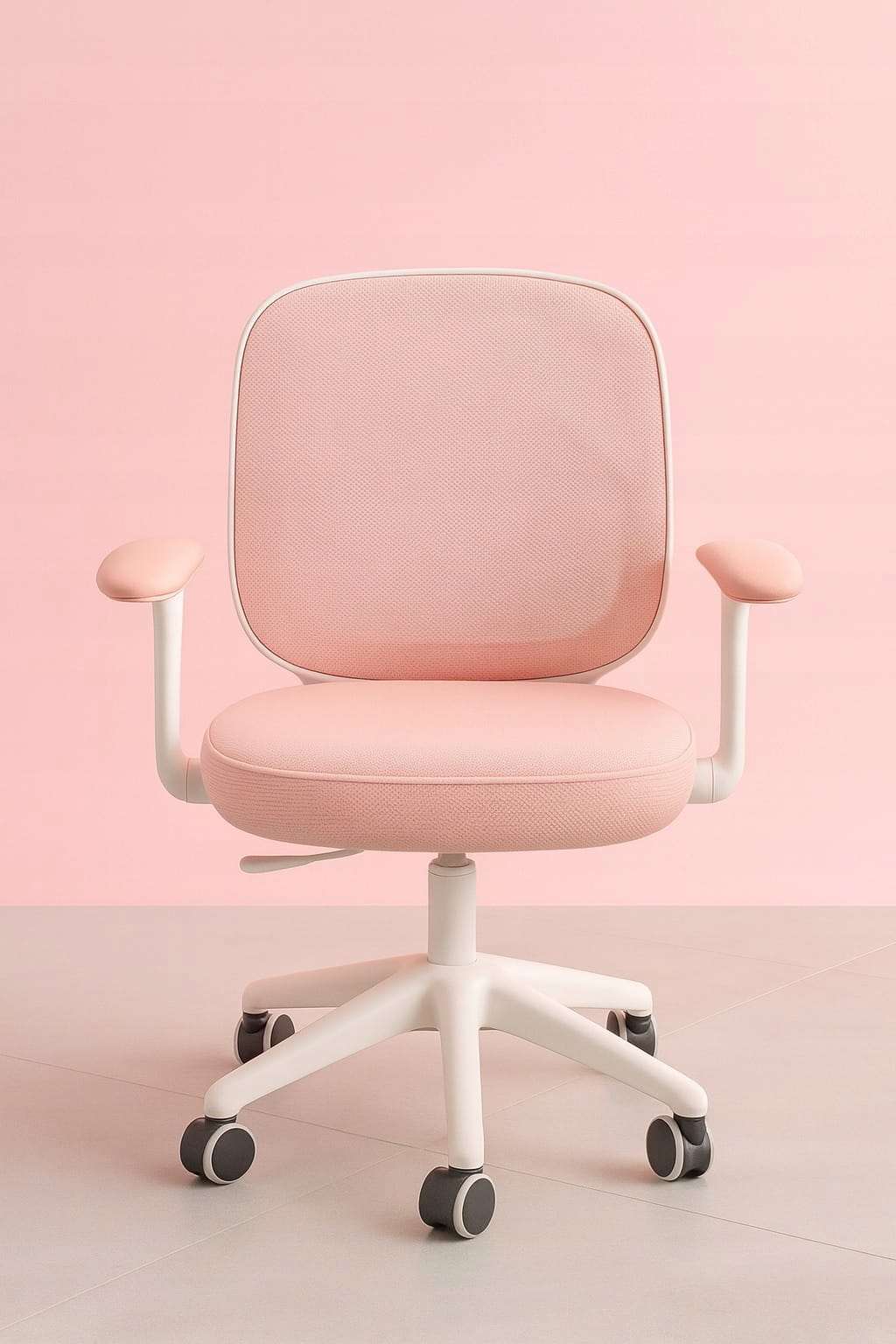 Fotel obrotowy to znakomita propozycja krzesła do biurka dla Twojego dziecka, które łączy funkcjonalność z estetyką, stając się doskonałą ozdobą pokoju dziecięcego. Tapicerka w pięknym różowym kolorze w połączeniu z białą konstrukcją wprowadza do wnętrza delikatność doskonałą do dziewczęcego pokoju. Dzięki regulowanej wysokości siedziska, fotel można dostosować tak, aby siedzenie przy biurku było wygodne i komfortowe dla Twojego dziecka. Możliwość regulacji wysokości oparcia zapewnia prawidłową postawę podczas odrabiania lekcji lub wykonywania ulubionych prac plastycznych.