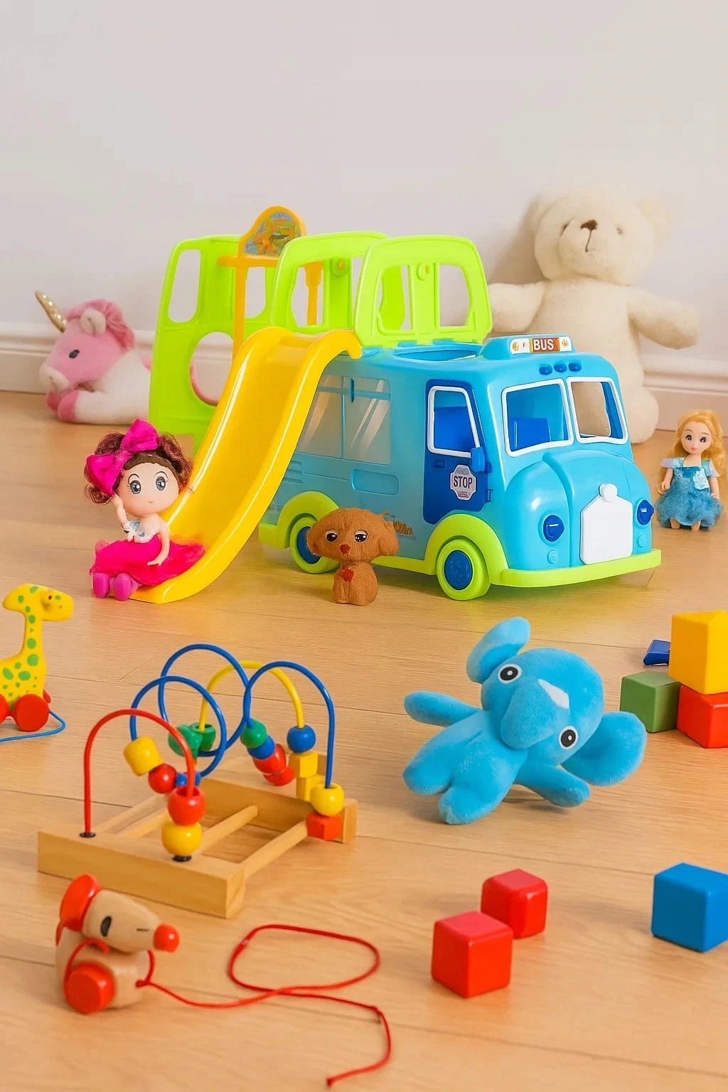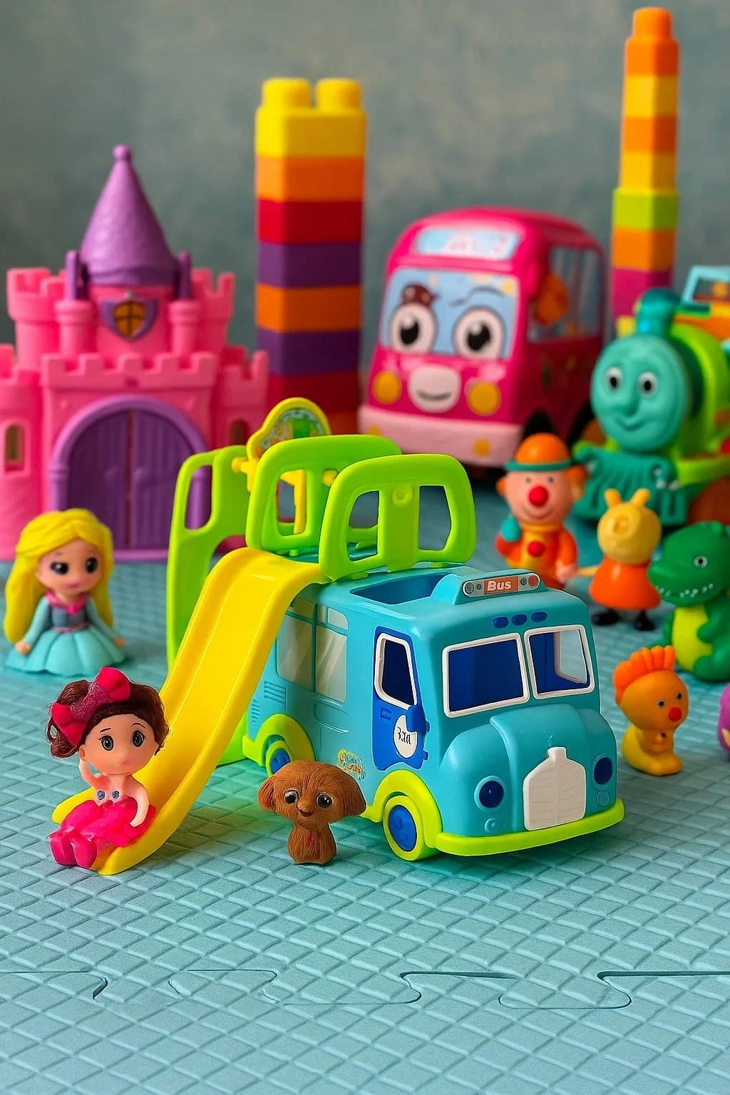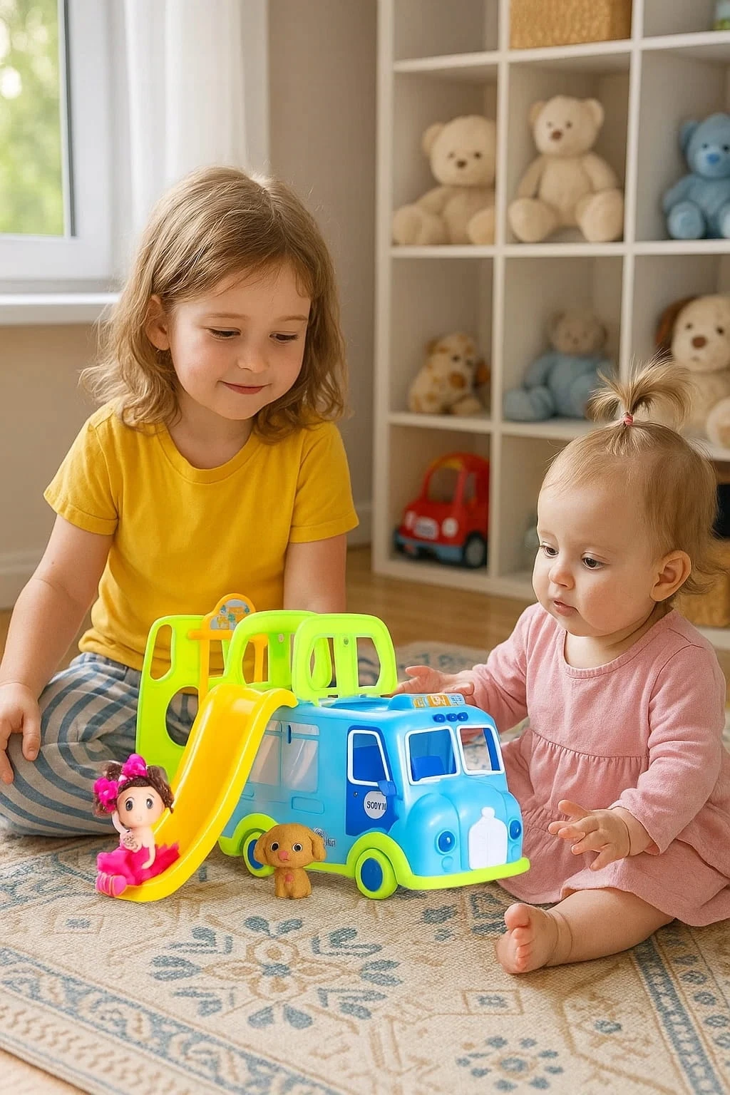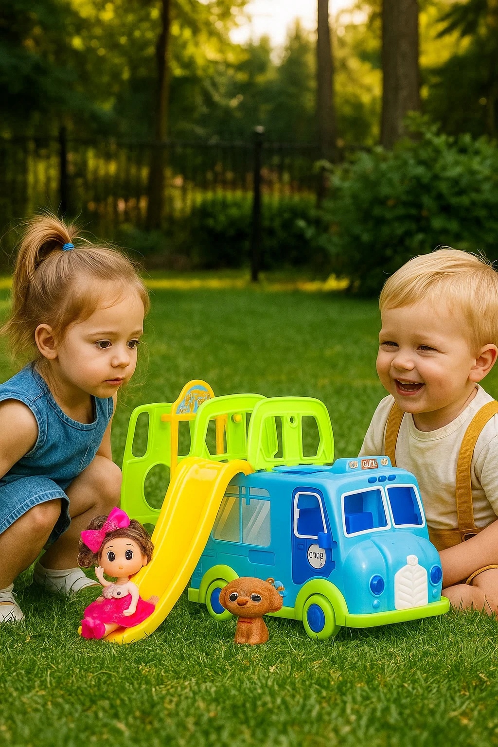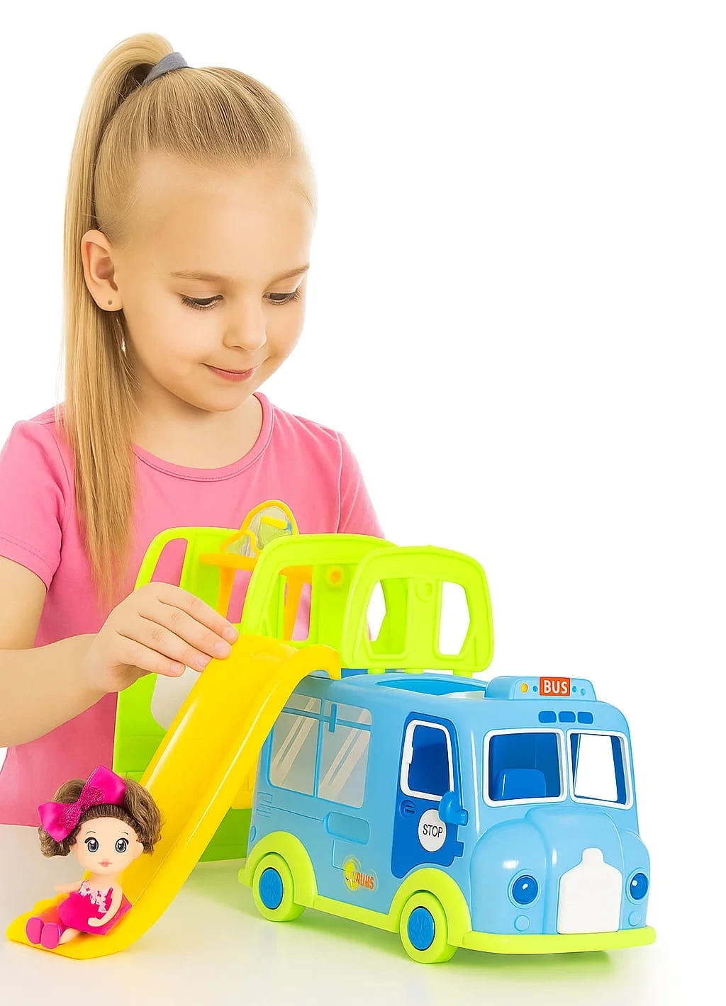 Kolorowy Bus z Zjeżdżalnią + Lalka i Piesek – Zestaw Zabawowy dla Dzieci