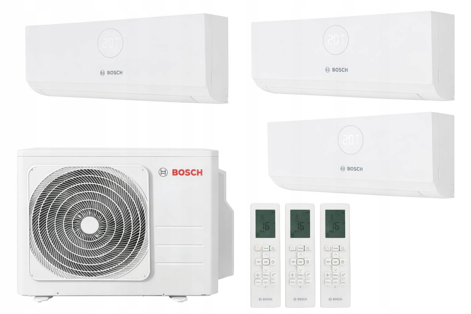- Trzy jednostki wewnętrzne Bosch Climate CL3000iUW20E