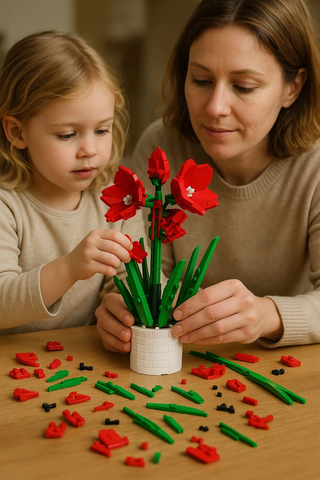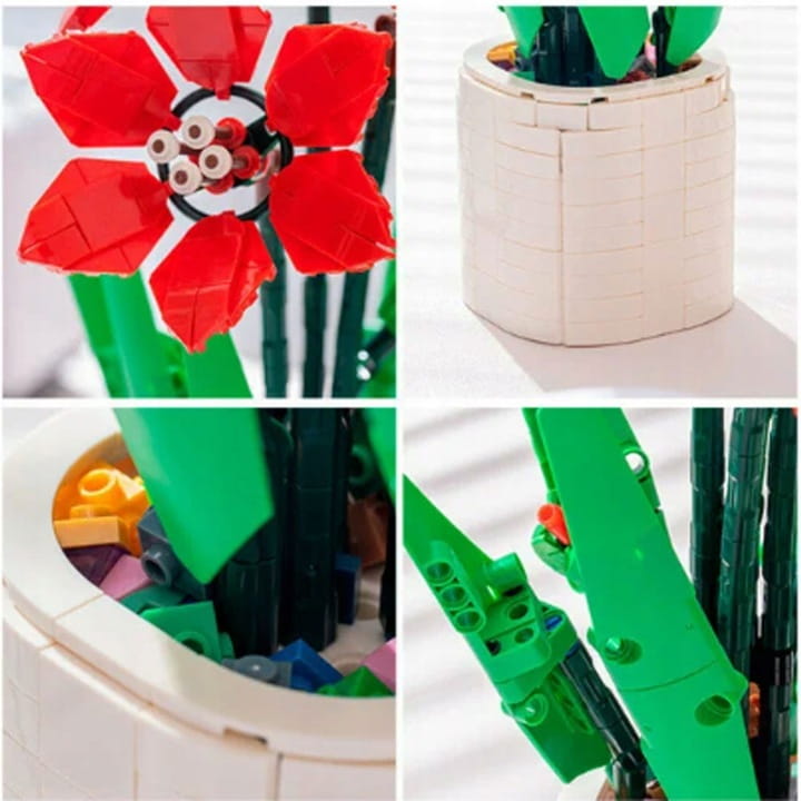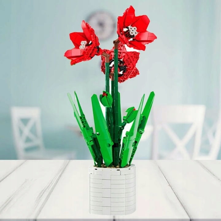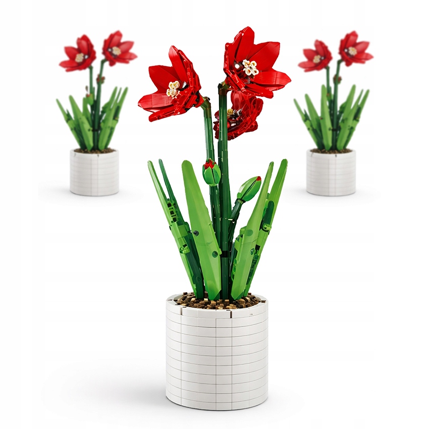 ⭐ Klocki Konstrukcyjne Amarylis Kwiaty 876 el. Doniczka Bukiet Dekoracja ⭐