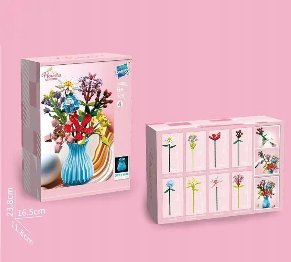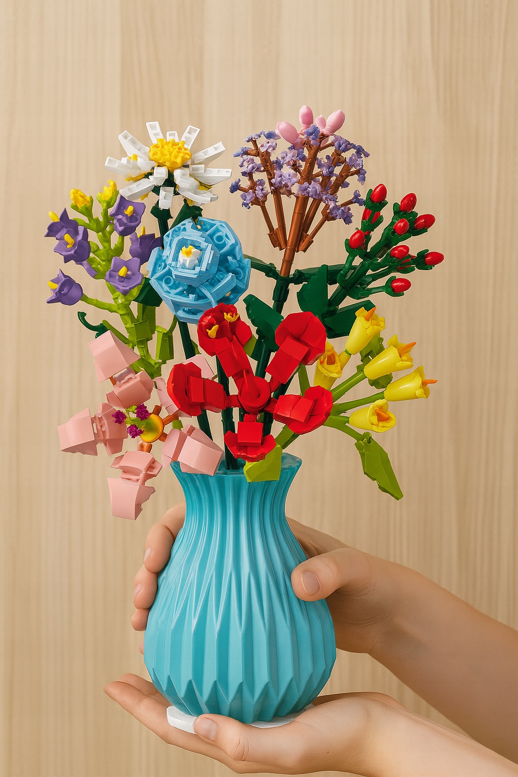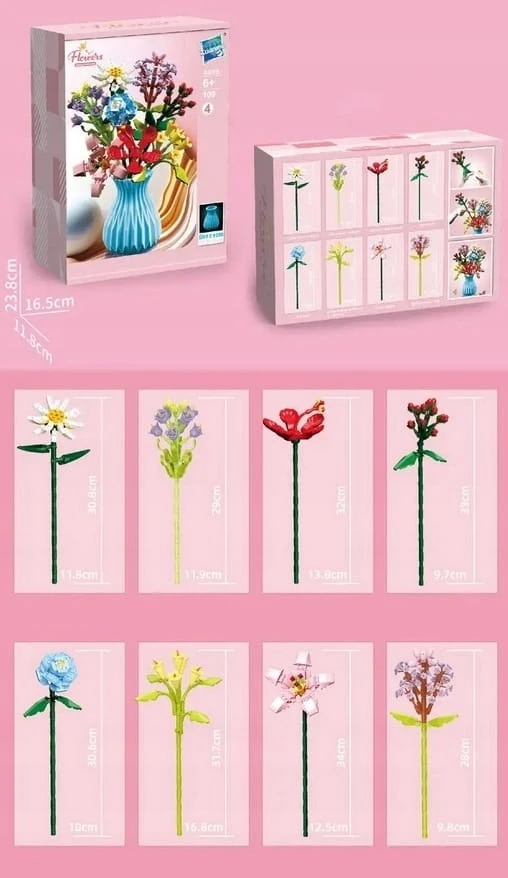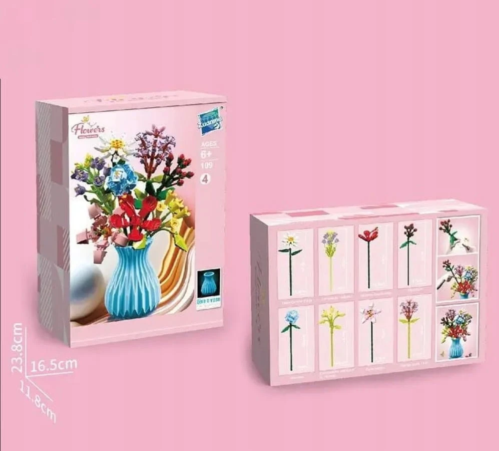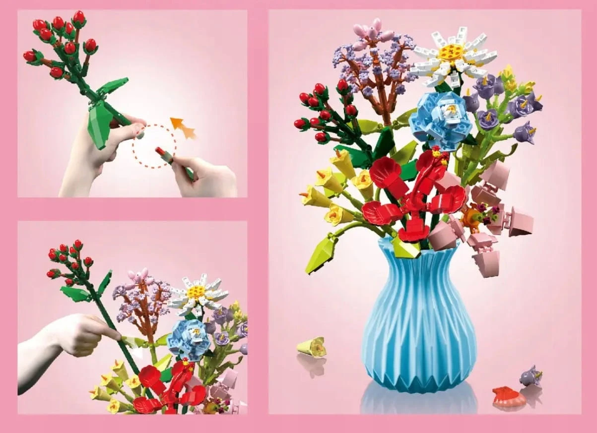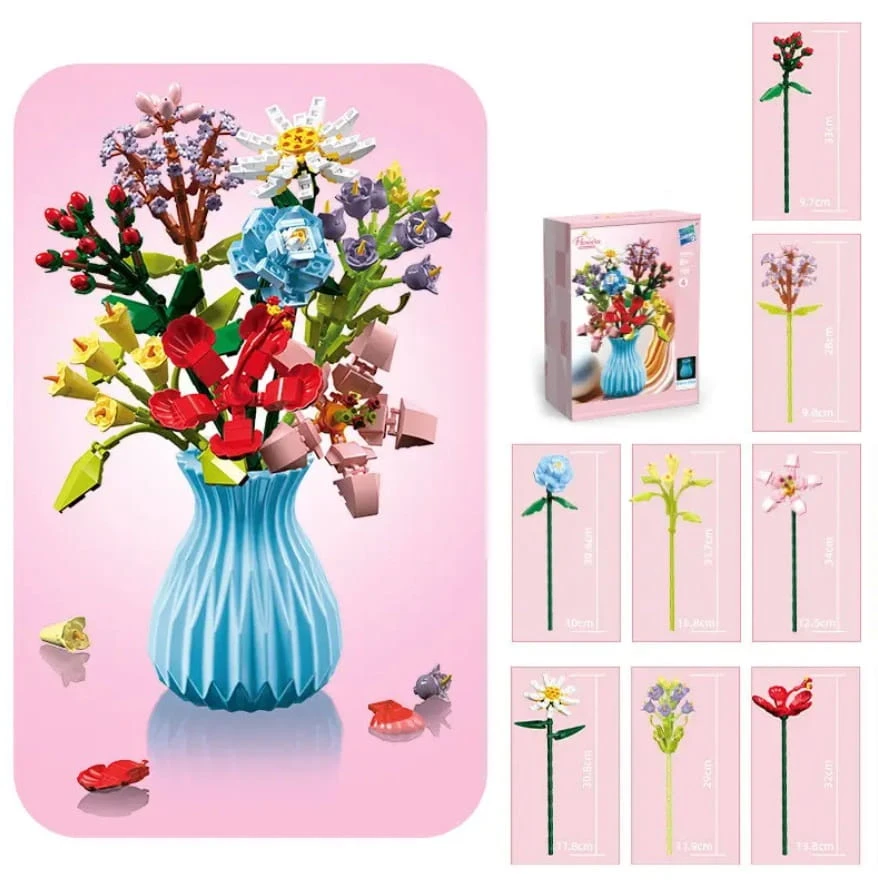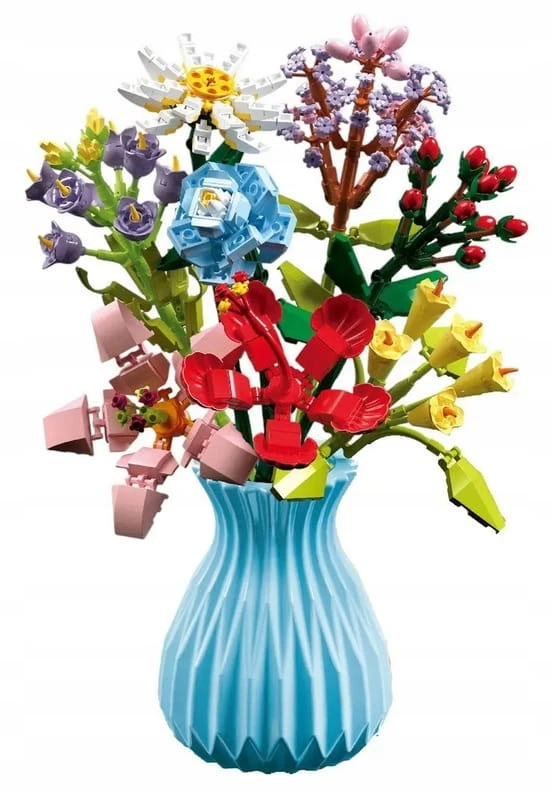 Klocki Kwiaty w Wazonie 699el Zestaw Konstrukcyjny Bukiet Ozdoba Na Prezent