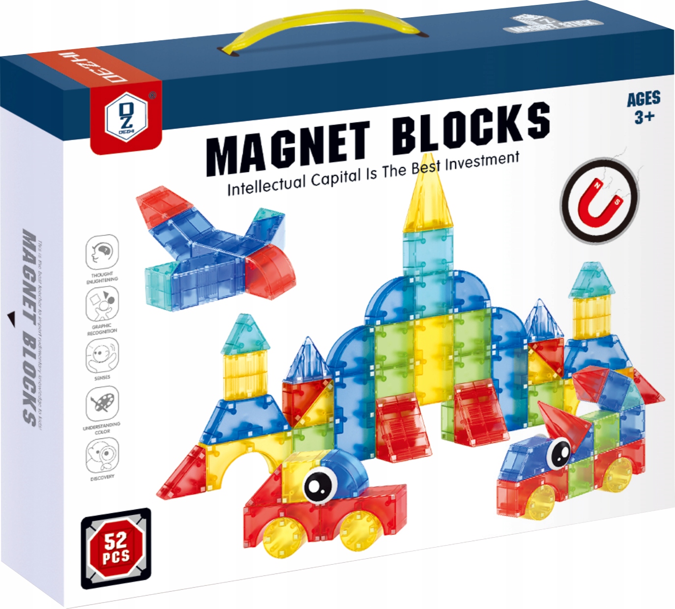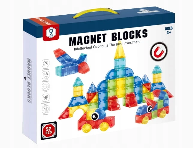 Klocki Magnetyczne 3D Duże Edukacyjny Zestaw Konstrukcyjny Dla Dzieci 52el