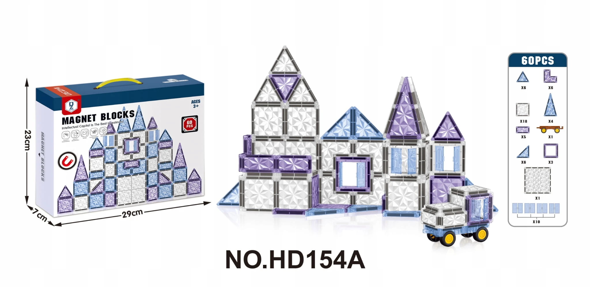 Klocki Magnetyczne 3D Duże Edukacyjny Zestaw Konstrukcyjny Zabawa 60 el.