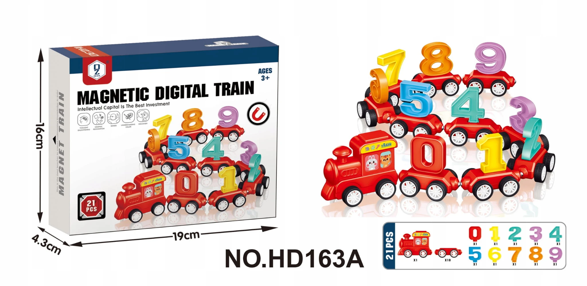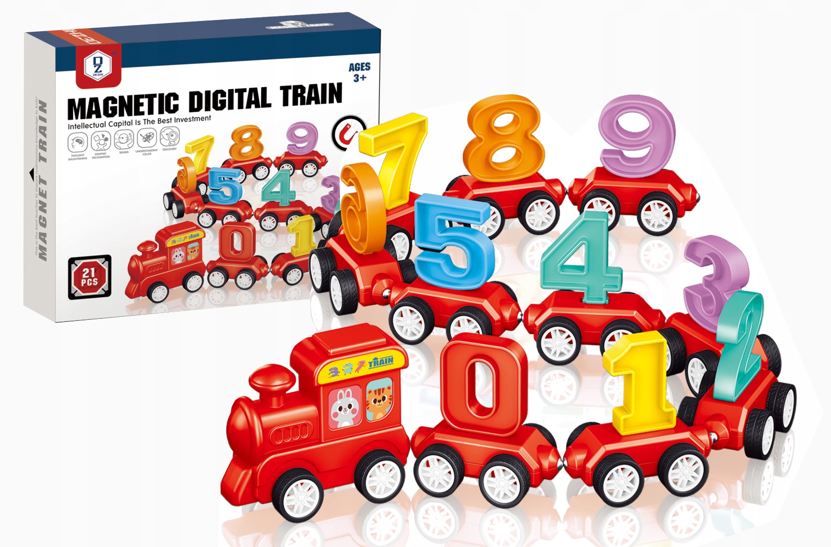 ✨ Klocki Magnetyczne Pociąg z Cyferkami Nauka Liczenia Edukacyjny Zestaw 21el ✨