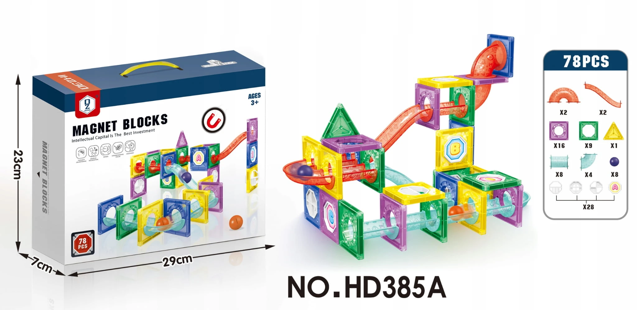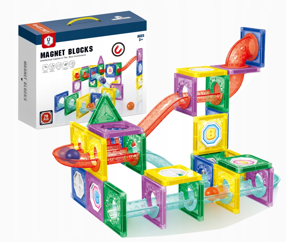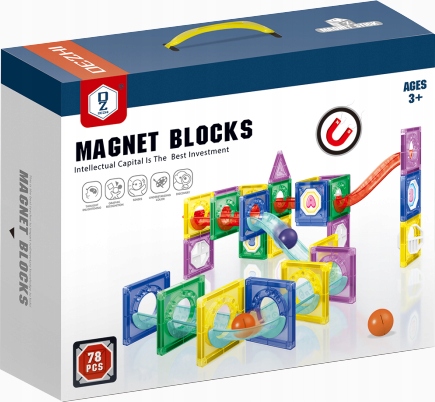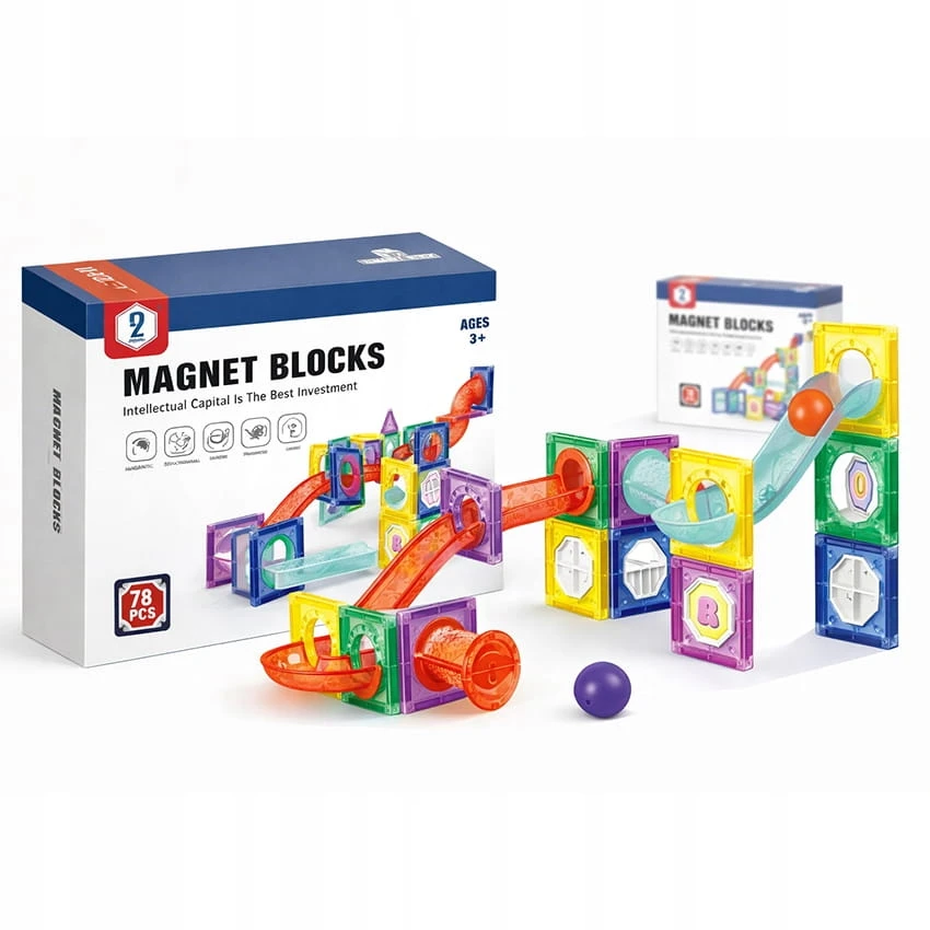 Klocki Magnetyczne Tor Kulkowy Kulodrom 78 el. Zestaw Konstrukcyjny 3D