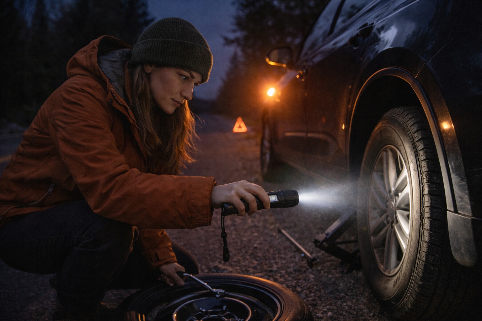 Silna, skupiona wiązka doskonale oświetla drogę i teren nawet w całkowitej ciemności.