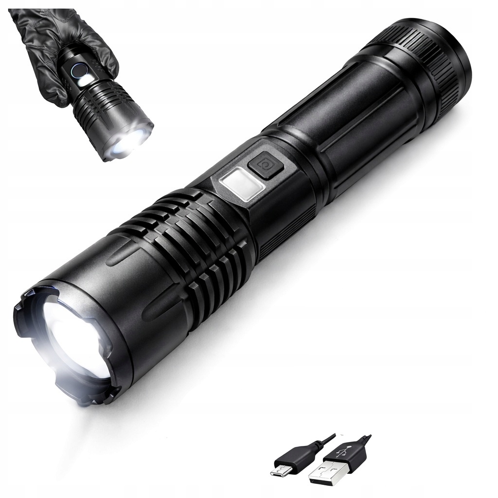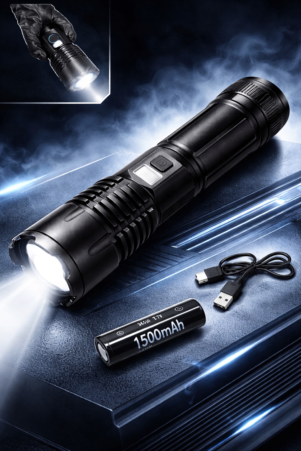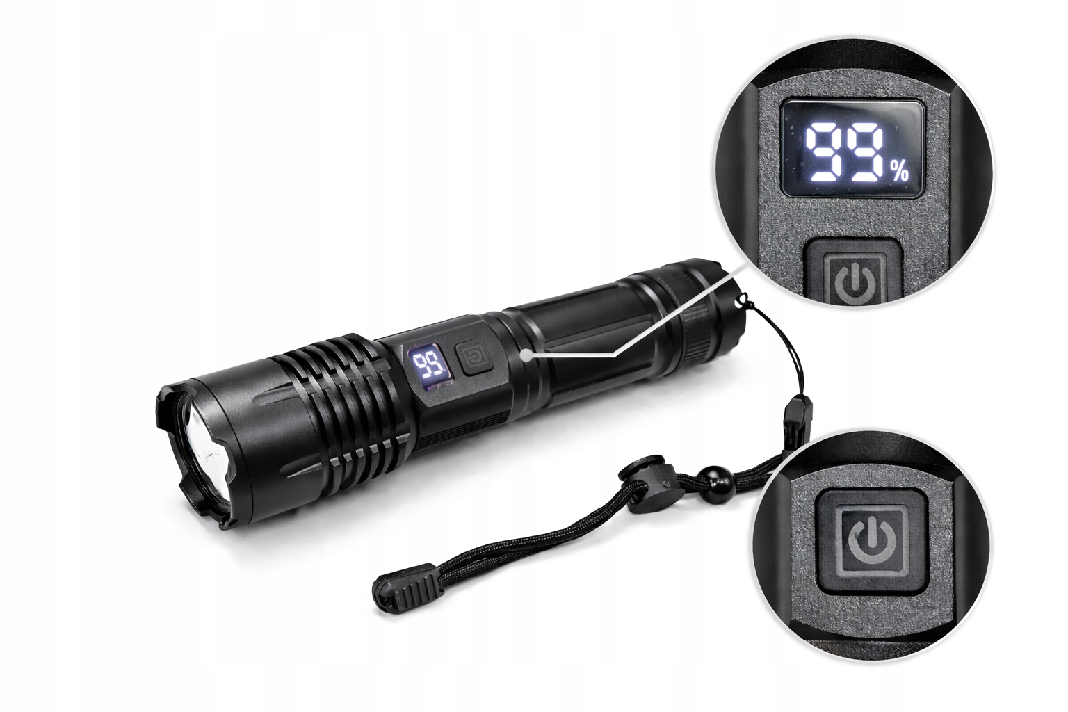 Latarka Taktyczna LED z Wyświetlaczem – USB-C | Akumulator 1500mAh | Wskaźnik Baterii