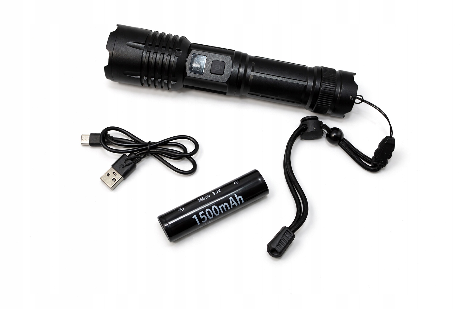 LATARKA Taktyczna LED AKUMULATOROWA Z WSKAŹNIKIEM Baterii 1500mAh CZARNA